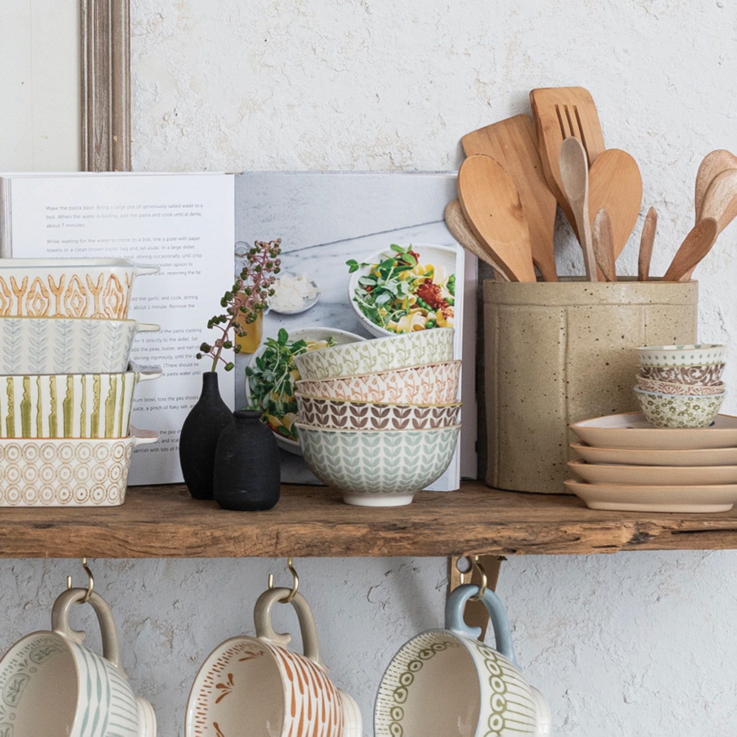 Stoneware Pinch Pot w/ Pattern, Multi Color, 4 Styles