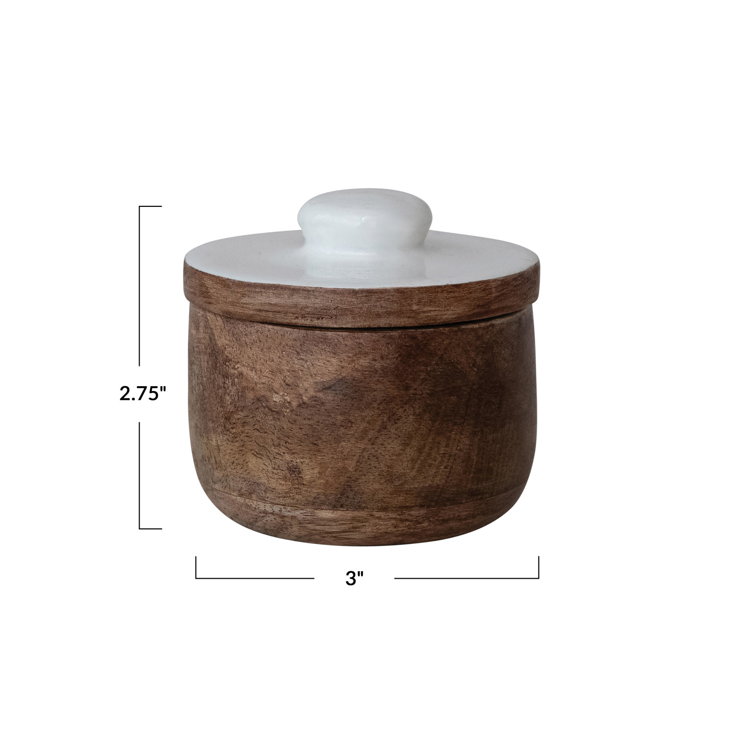 Catalog Name: 3" Round x 2-3/4"H Mango Wood Pinch Pot w/ Enameled Lid, Natural & White