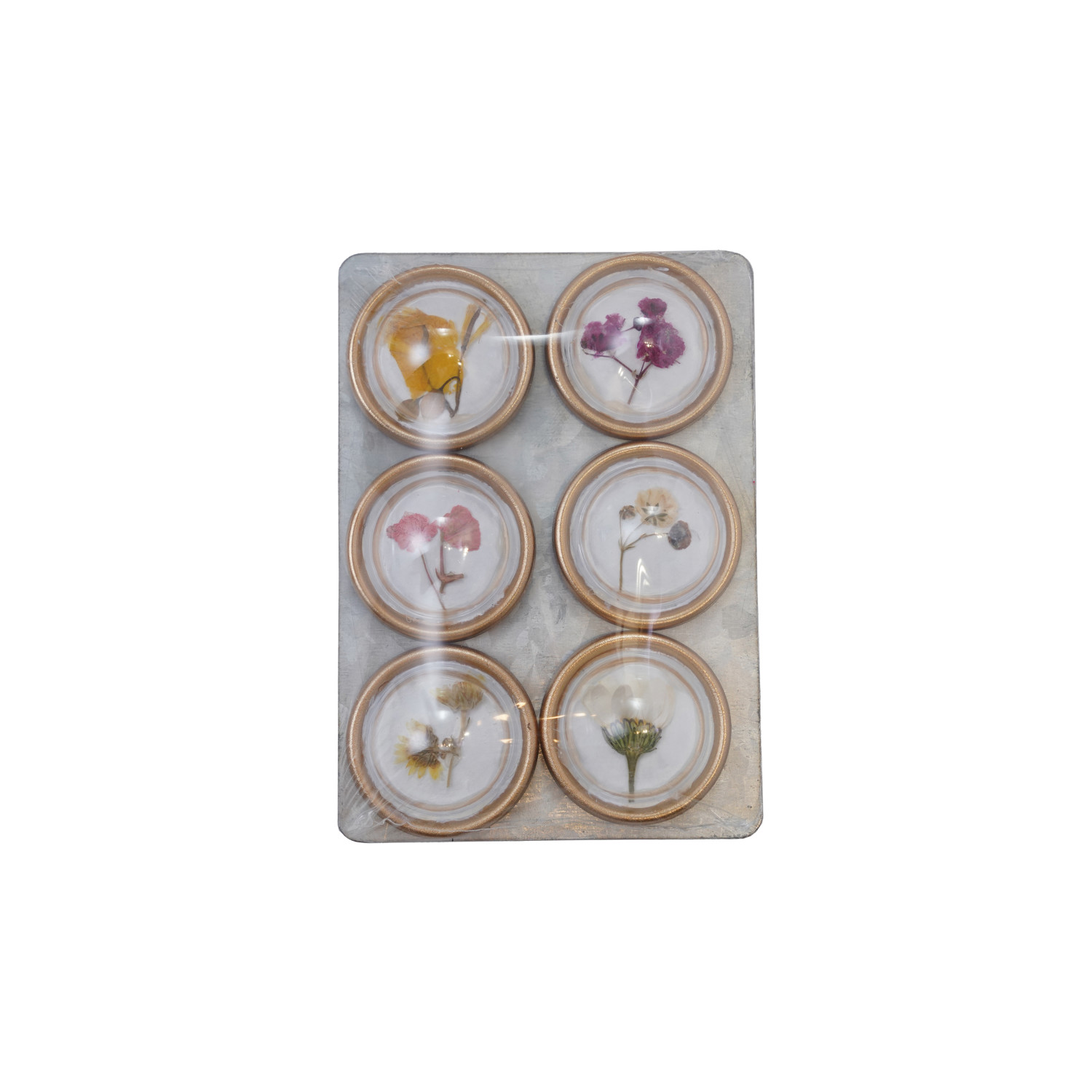 Resin Convex Magnets on Metal Card with Botanicals, Set of 6