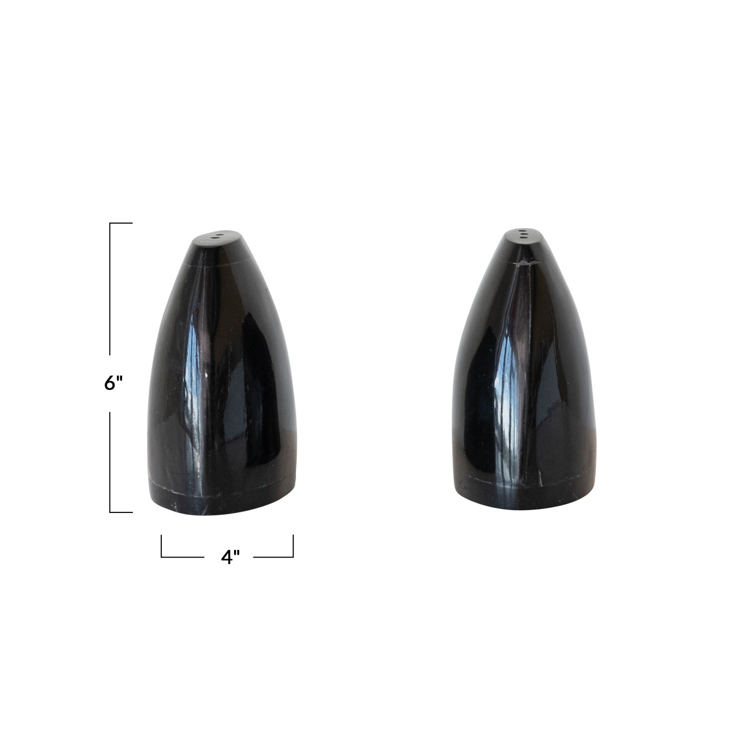 This horn salt and pepper shaker set of 2 is a beautiful way to add spice and character to the home. The shakers are made of hornsthat has been polished to create a smooth and shiny surface. The shakers have a round shape ideal for holding salt and pepper. The shakers also have a natural texture that adds some contrast and interest to the shakers. The shakers measure 3 inches in length, 1.75 inches in width, and 3 inches in height each, and each one will vary slightly in shape and size, making them unique and one-of-a-kind pieces. Use these shakers for seasoning or displaying salt and pepper that match any farmhouse, French country, Scandinavian, lodge, or modern-style home. These horn salt and pepper shaker sets are versatile and beautiful pieces that enhance the table.