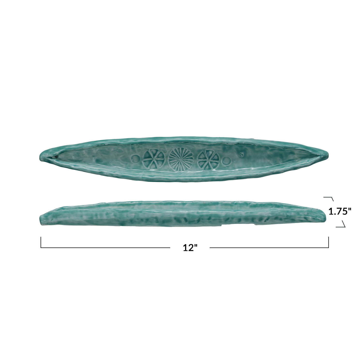 Catalog Name: 12"L x 1-3/4"W Hand-Painted Debossed Stoneware Olive Dish, Aqua ©