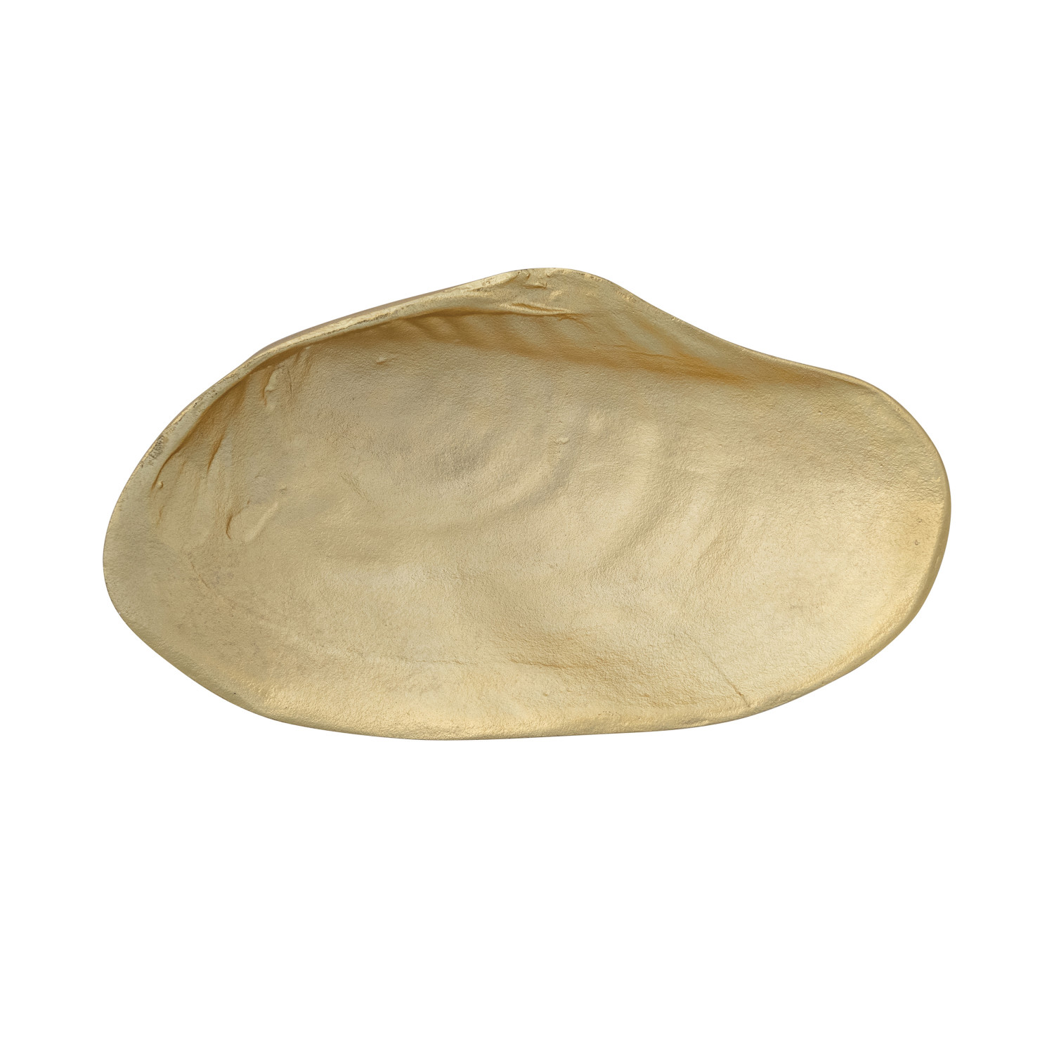 Decorative Cast Aluminum Footed Shell Shaped Tray, Gold Finish