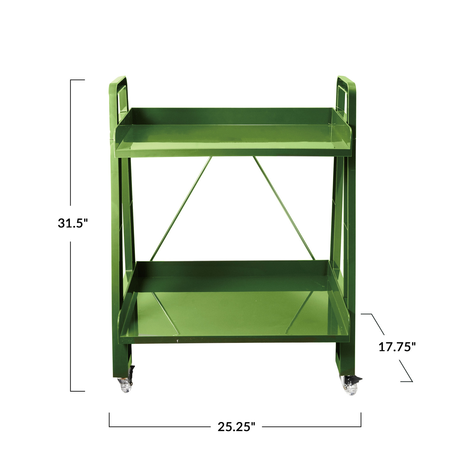 Catalog Name: 25-1/4"W x 17-3/4"D x 31-1/2"H Plastic Cart on Casters w/ Handles & 2 Shelves, Olive Green, KD