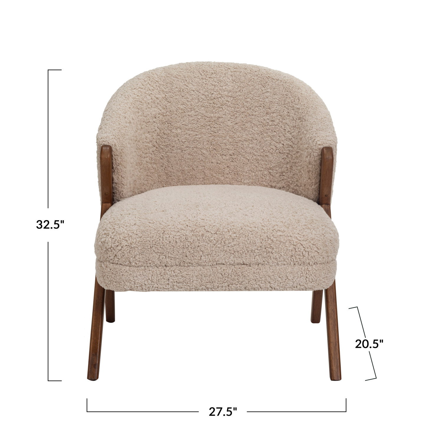 Catalog Name: 27-1/2"W x 20-1/2"D x 31-1/2"H Bouclé Fabric Upholstered Chair w/ Rubberwood Legs, Cream Color & Oak Finish, Truck Ship