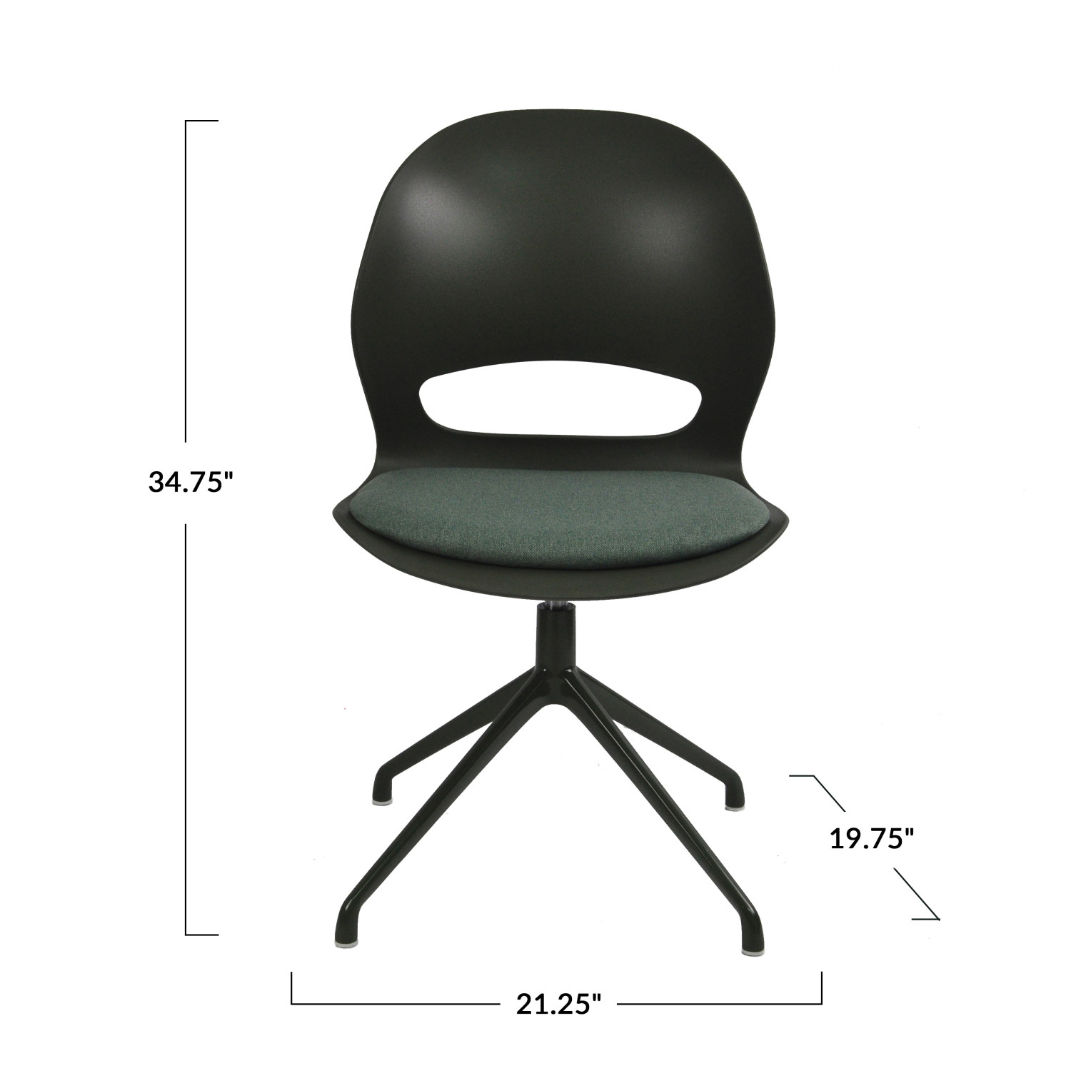 Catalog Name: 21-1/4"W x 19-3/4"D x 34-3/4"H Metal & Plastic Swivel Chair w/ Fabric Upholstered Seat, Green & Grey, KD