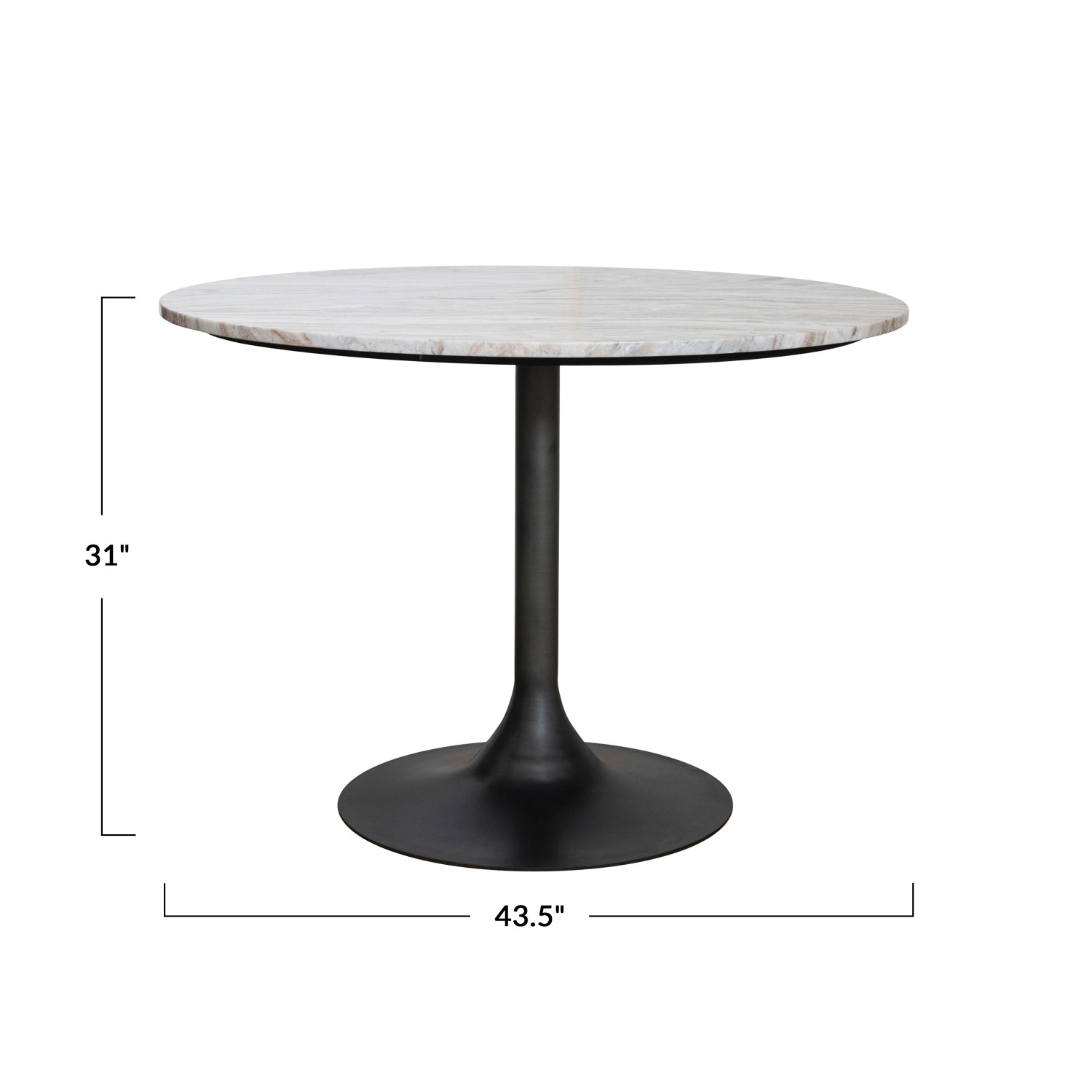 Catalog Name: 43-1/2" Round x 31"H Metal Tulip Table w/ Marble Top, Charcoal Color & Beige Melange, KD, Truck Ship (Each One Will Vary)