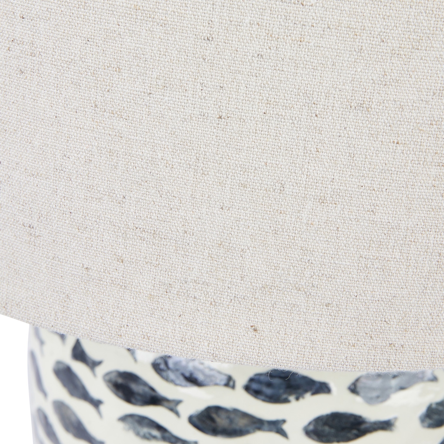 Capiz & Bamboo Table Lamp w/ Fish Pattern & Linen Shade, Blue & White