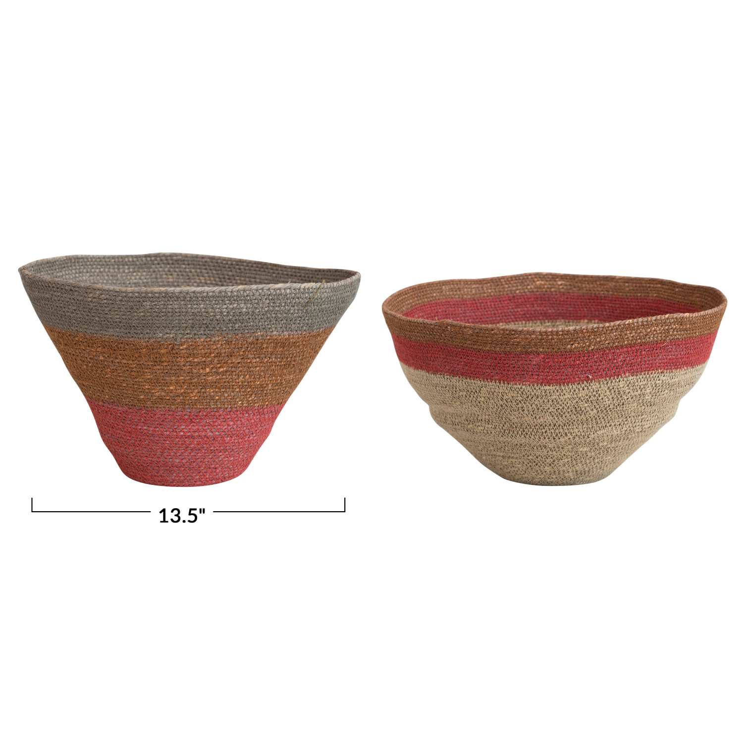 Hand-Woven Seagrass Nesting Baskets, Multi Color, Set of 2