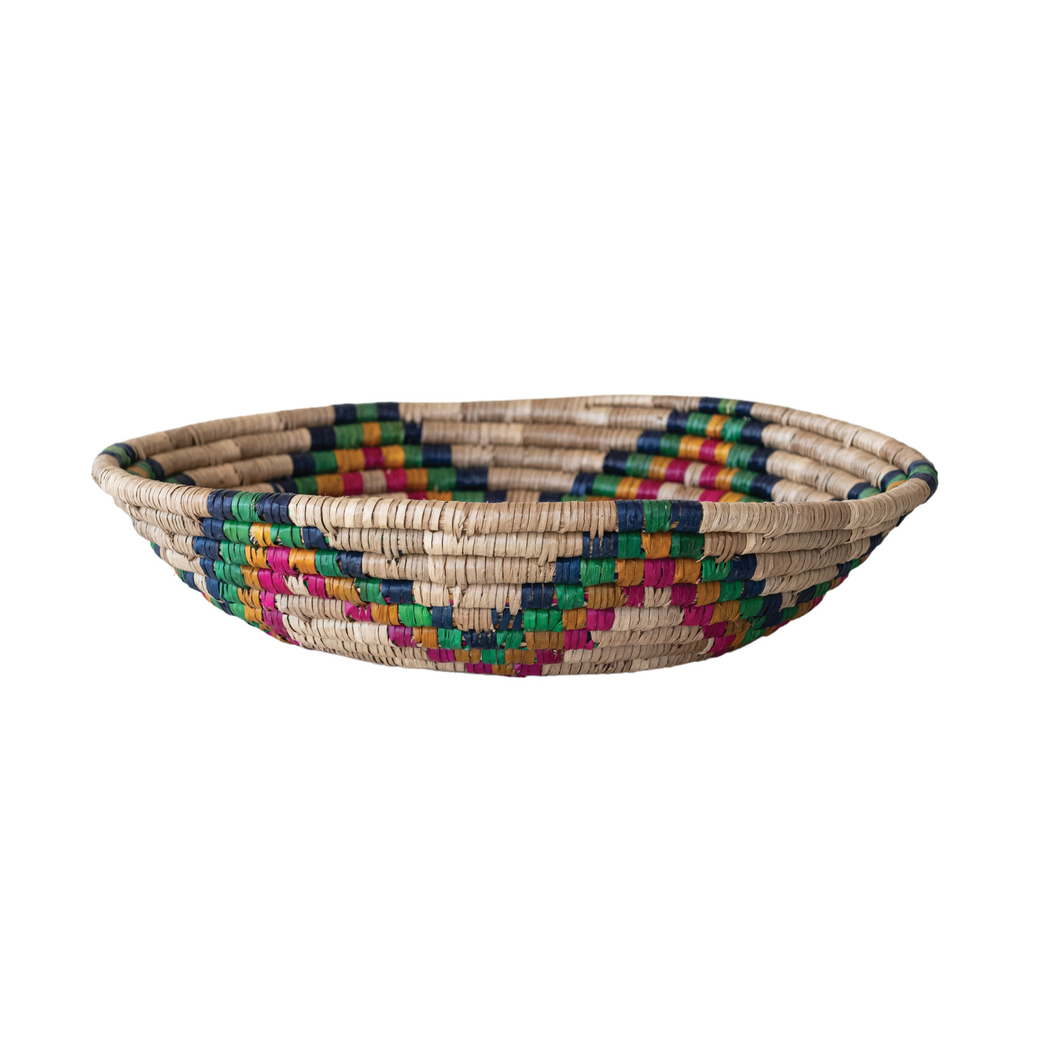 Catalog Name: 20" Round x 3-1/2"H Hand-Woven Seagrass Basket, Natural & Multi Color