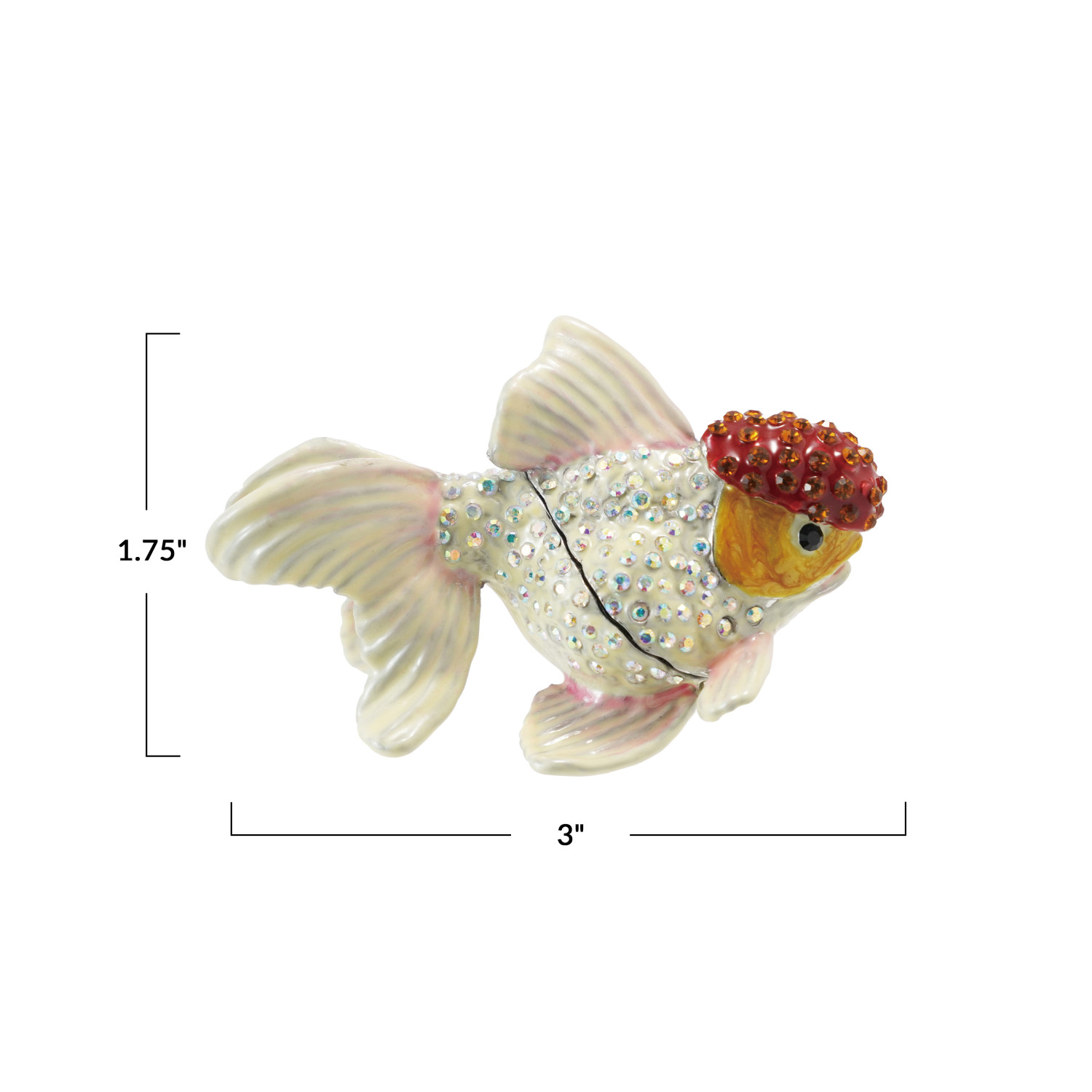 Catalog Name: 1-3/4"L x 3"W Enameled Metal Goldfish Shaped Trinket Box w/ Jewels, Orange Color & White