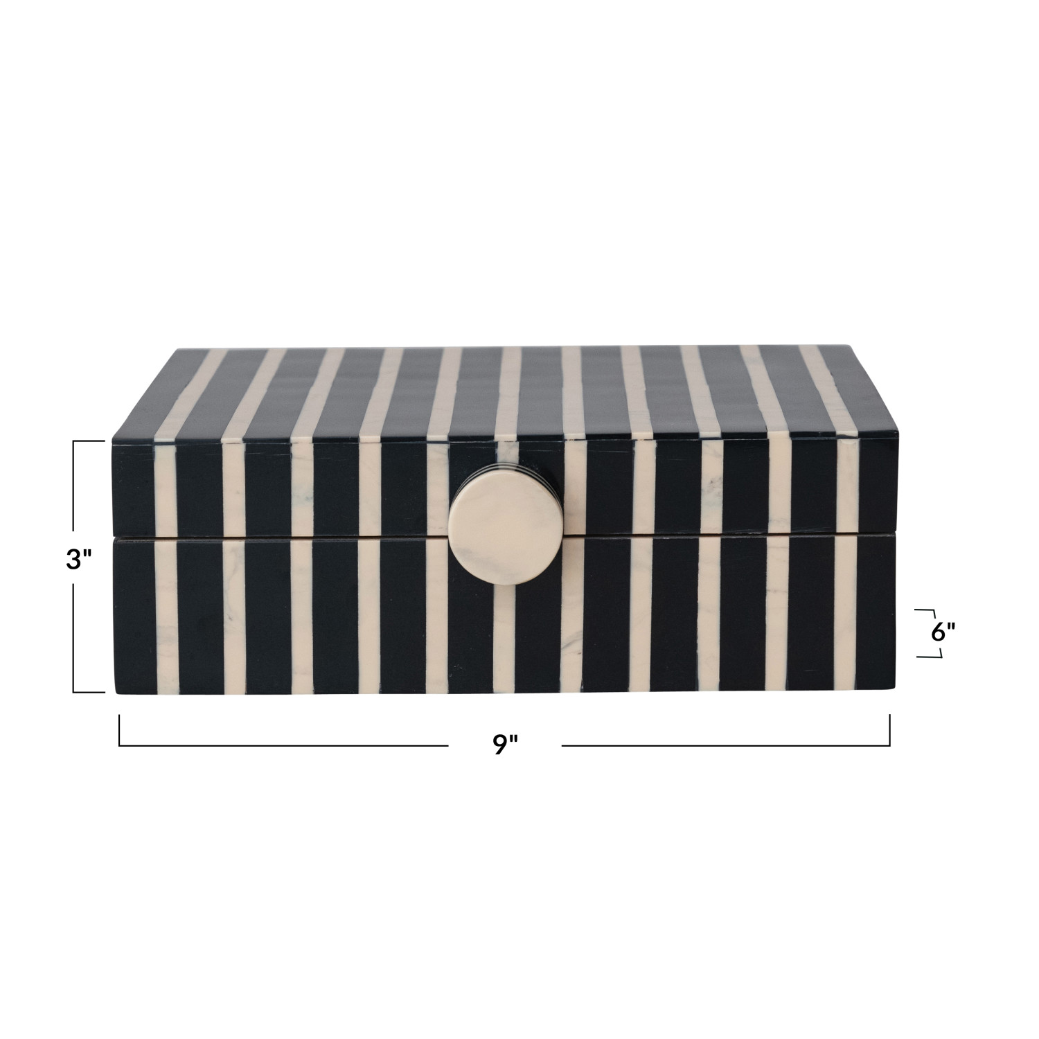 Catalog Name: 9"L x 6"W x 3"H Handmade Mango Wood, Resin & MDF Striped Box w/ Knob, Black, Tan Color & Natural