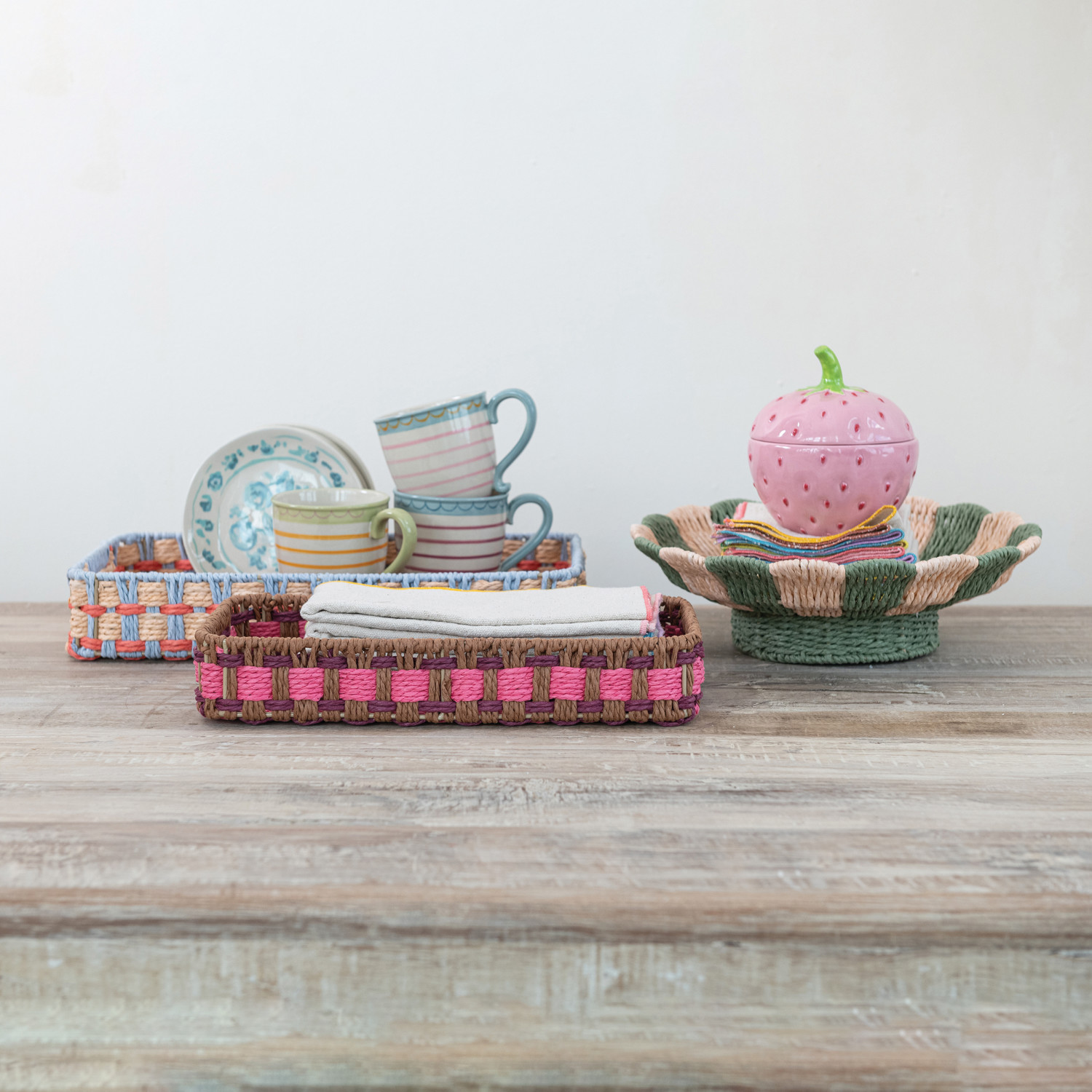 Decorative Woven Paper Rope Scalloped Footed Bowl with Stripes