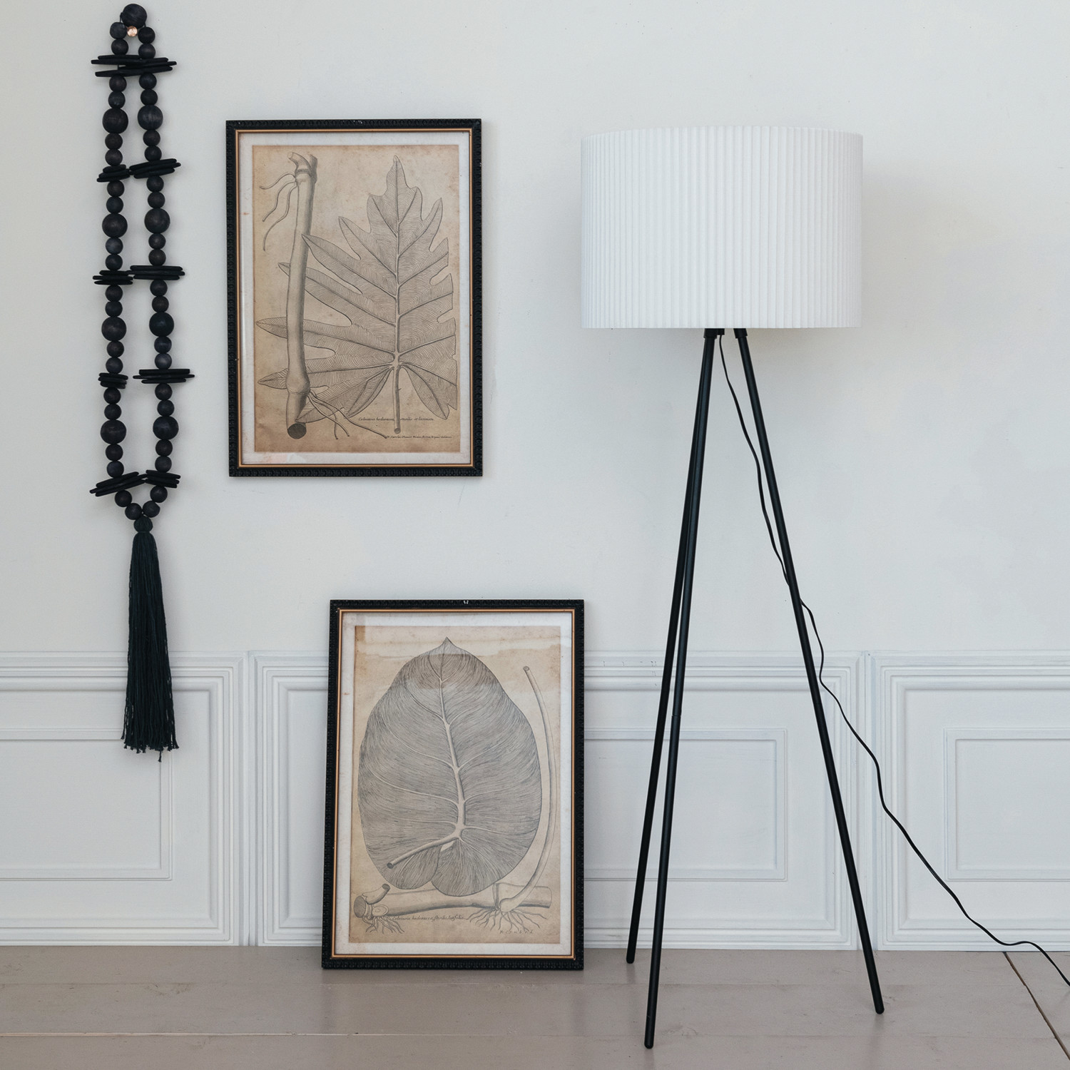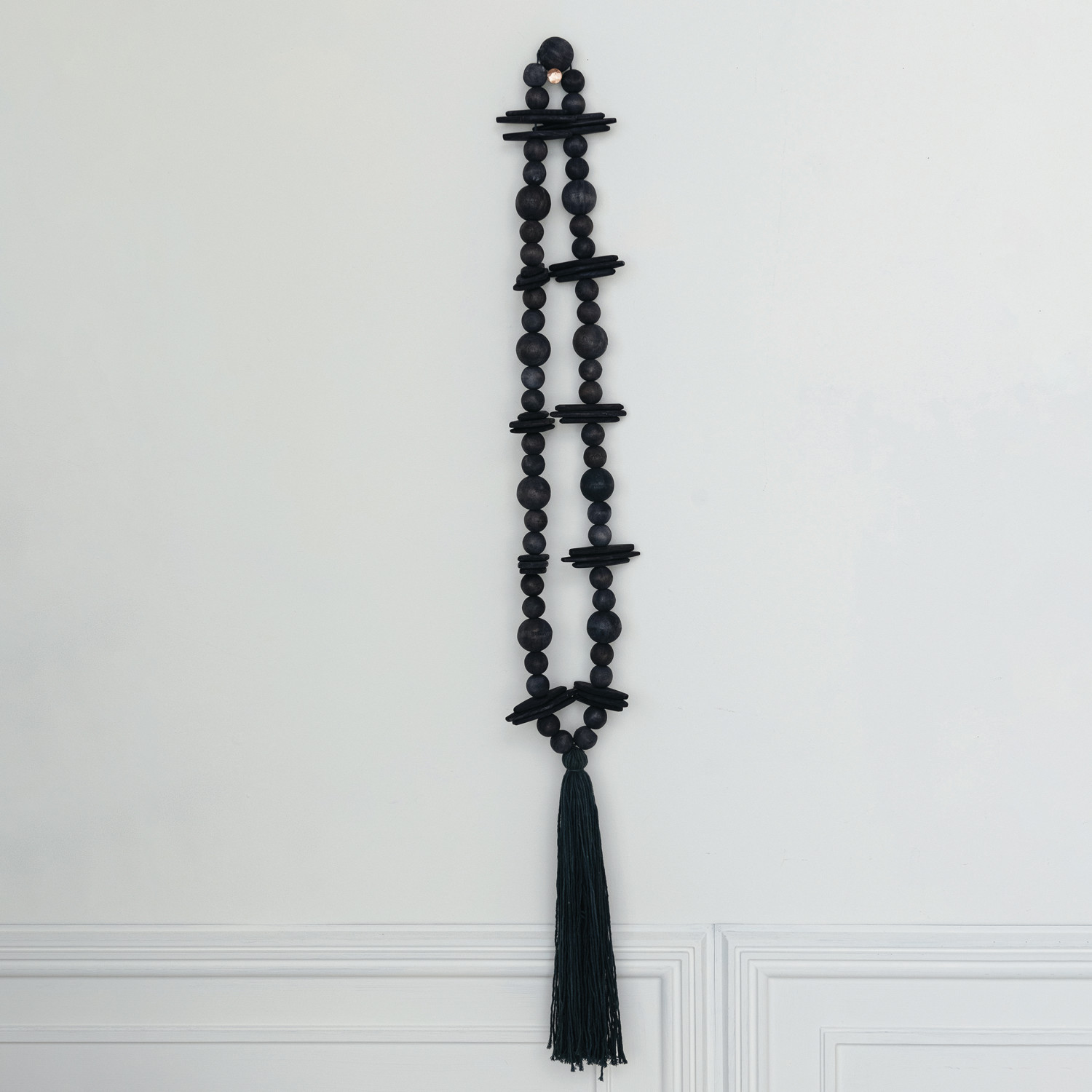 Oak Wood Beads w/ Cotton Tassel, Black