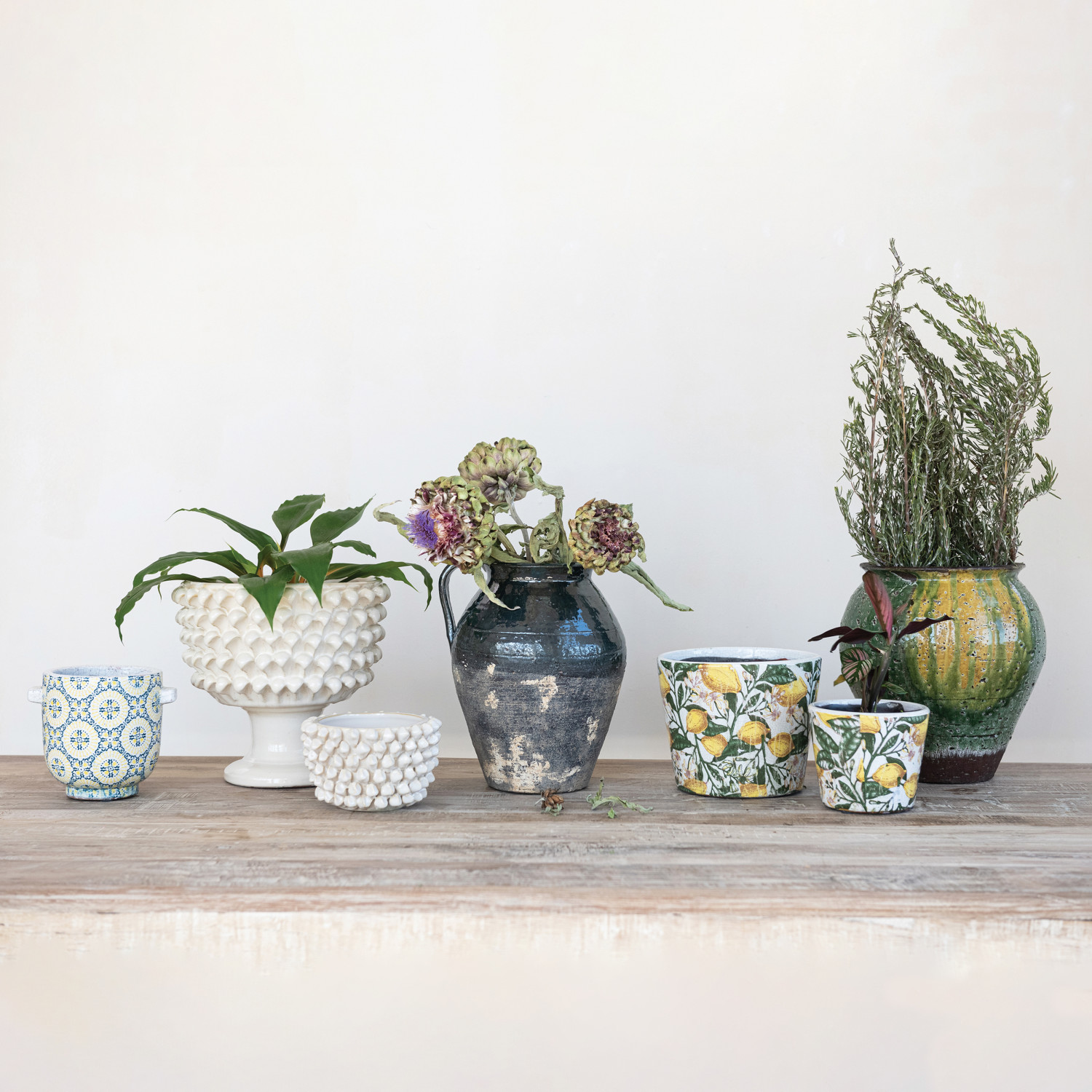 Stoneware 3D Formed Planter, Cream Color (Hold+F625s 5" Pot)
