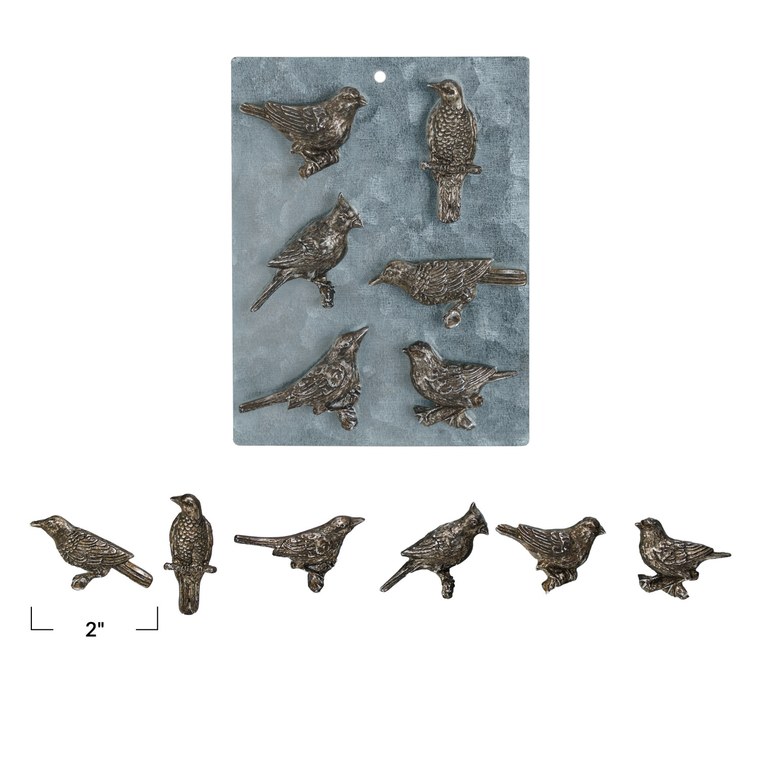 Catalog Name: 1-1/2"L - 2"L Pewter Bird Magnets on Card, Set of 6