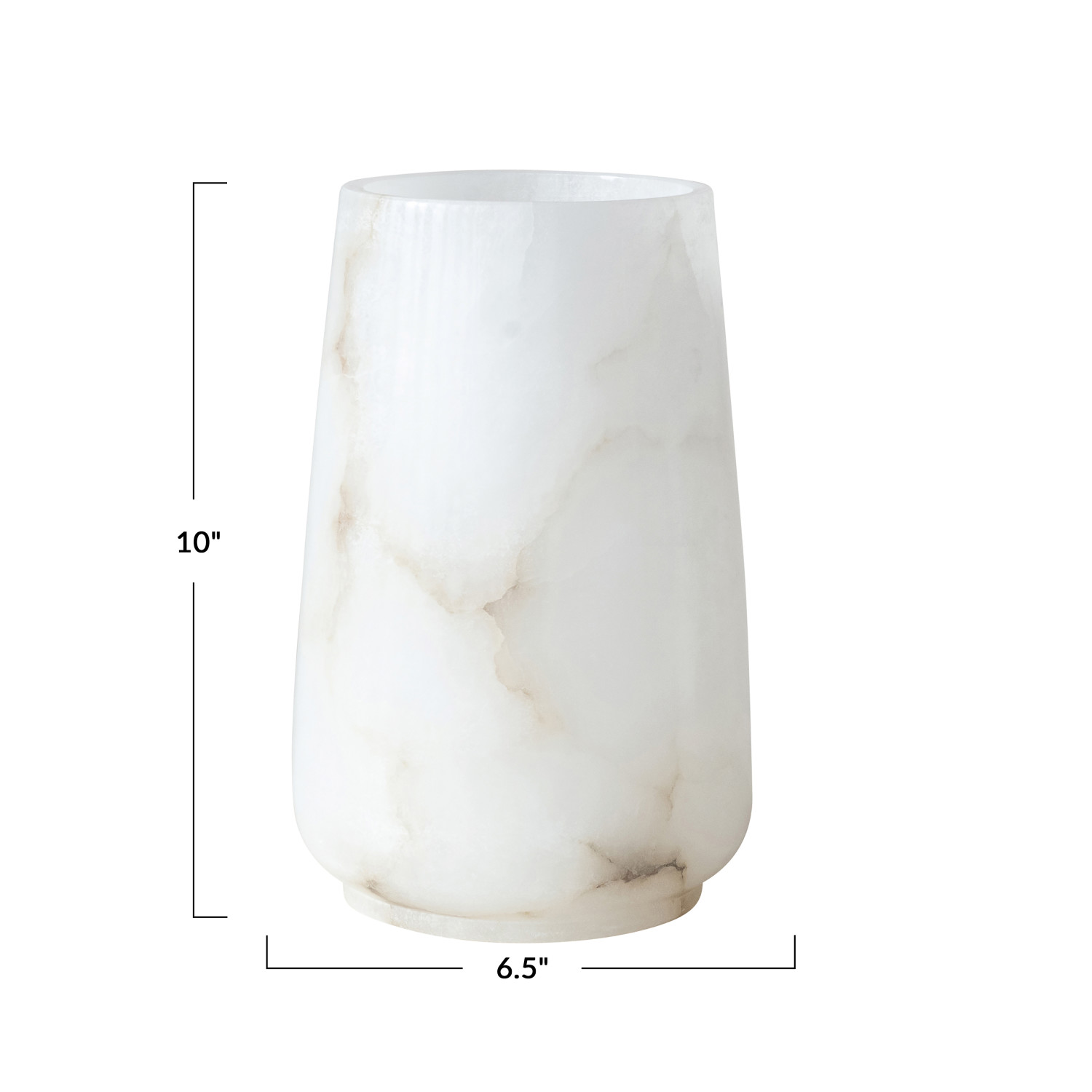Catalog Name: 6-1/2" Round x 10"H Alabaster Candle Holder/Vase, White (Each One Will Vary)