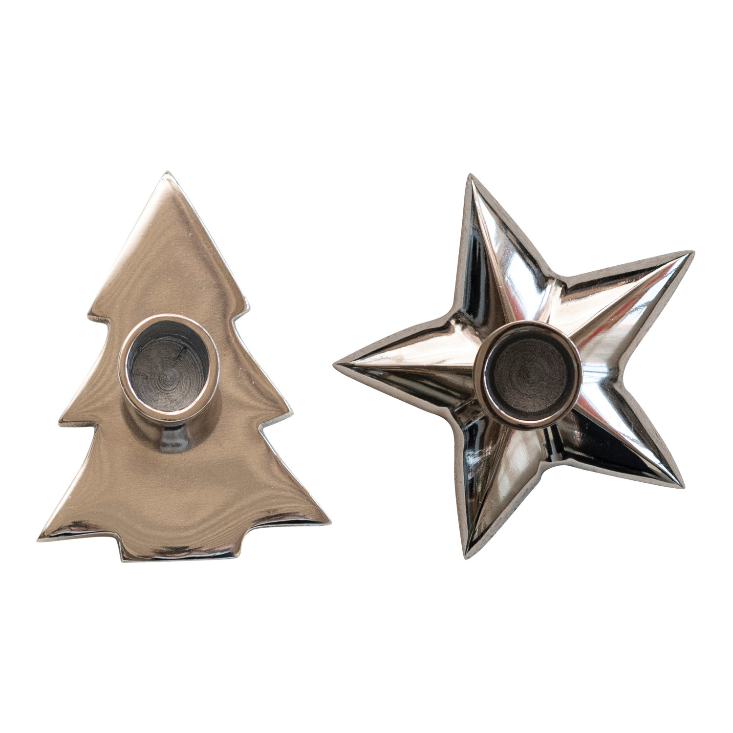 Electroplated Aluminum Tree/Star Taper Holder, Nickel Finish, 2 Styles