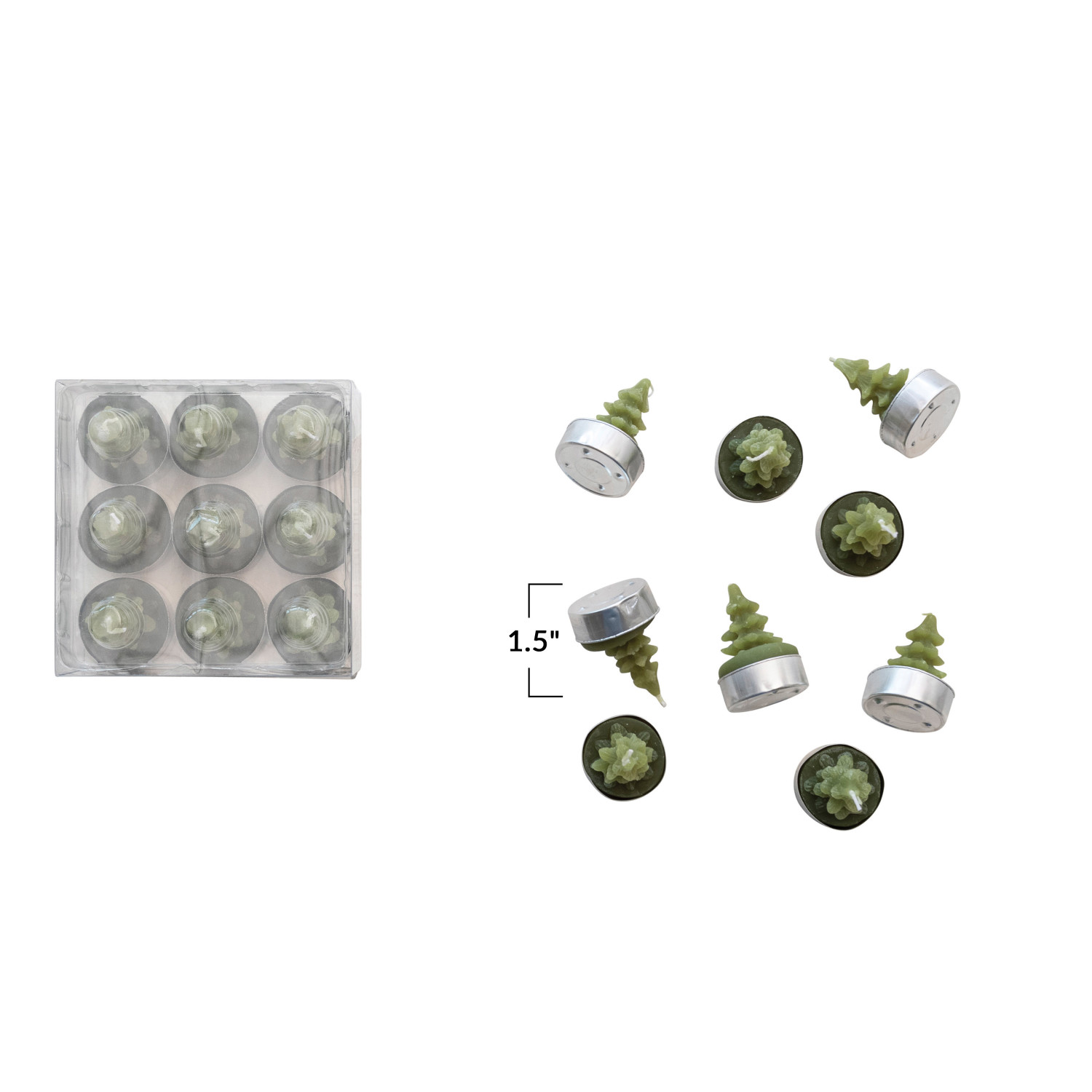 Catalog Name: 1-1/2" Round Unscented Tree Tealights, Cedar Green, Set of 9