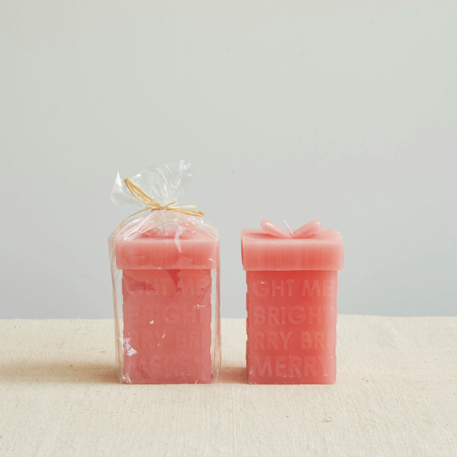 Unscented Gift Box Shaped Candle "Merry/Bright", Pink