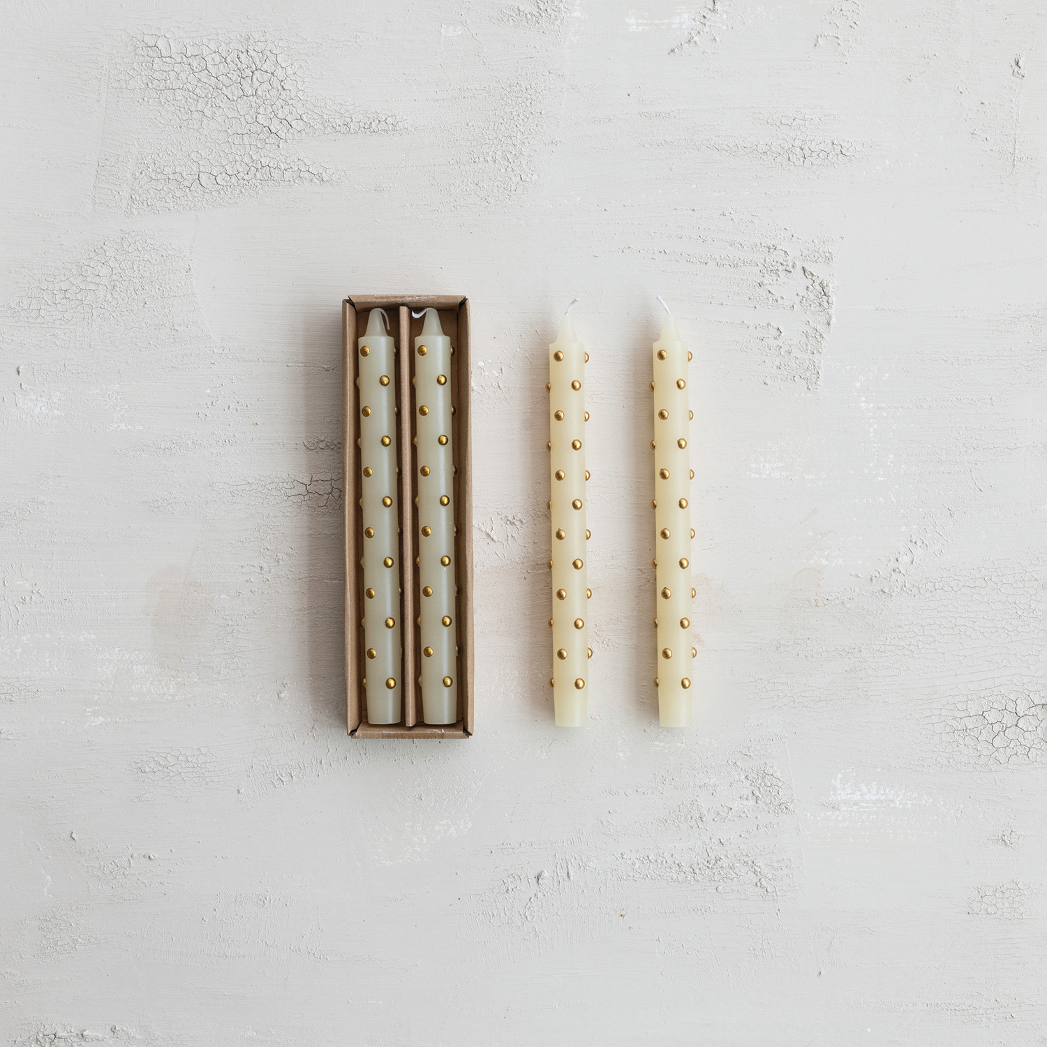 Unscented Taper Candles with 3D Dots in Box, Set of 2