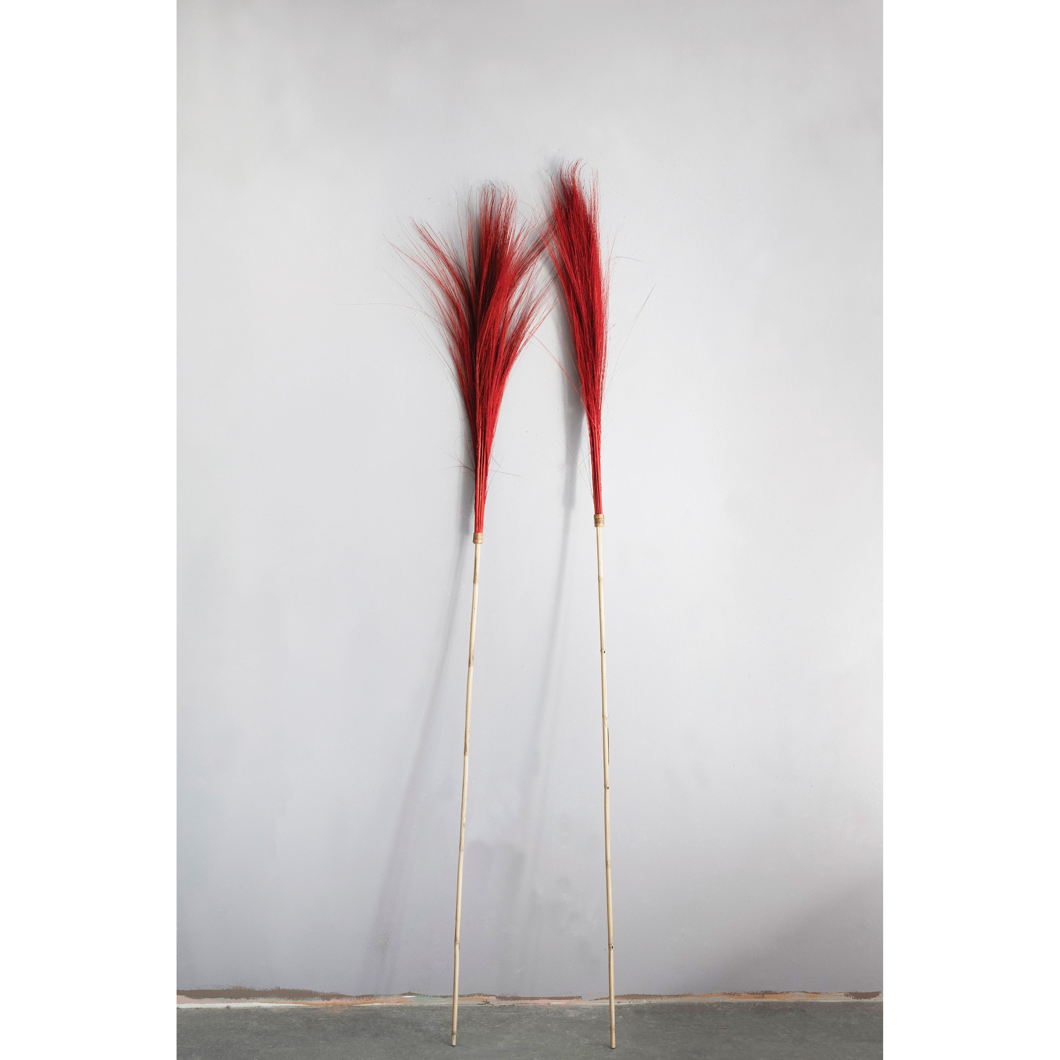 Approximately 78"H Dried Natural Tiger Grass on Bamboo Pole, Red