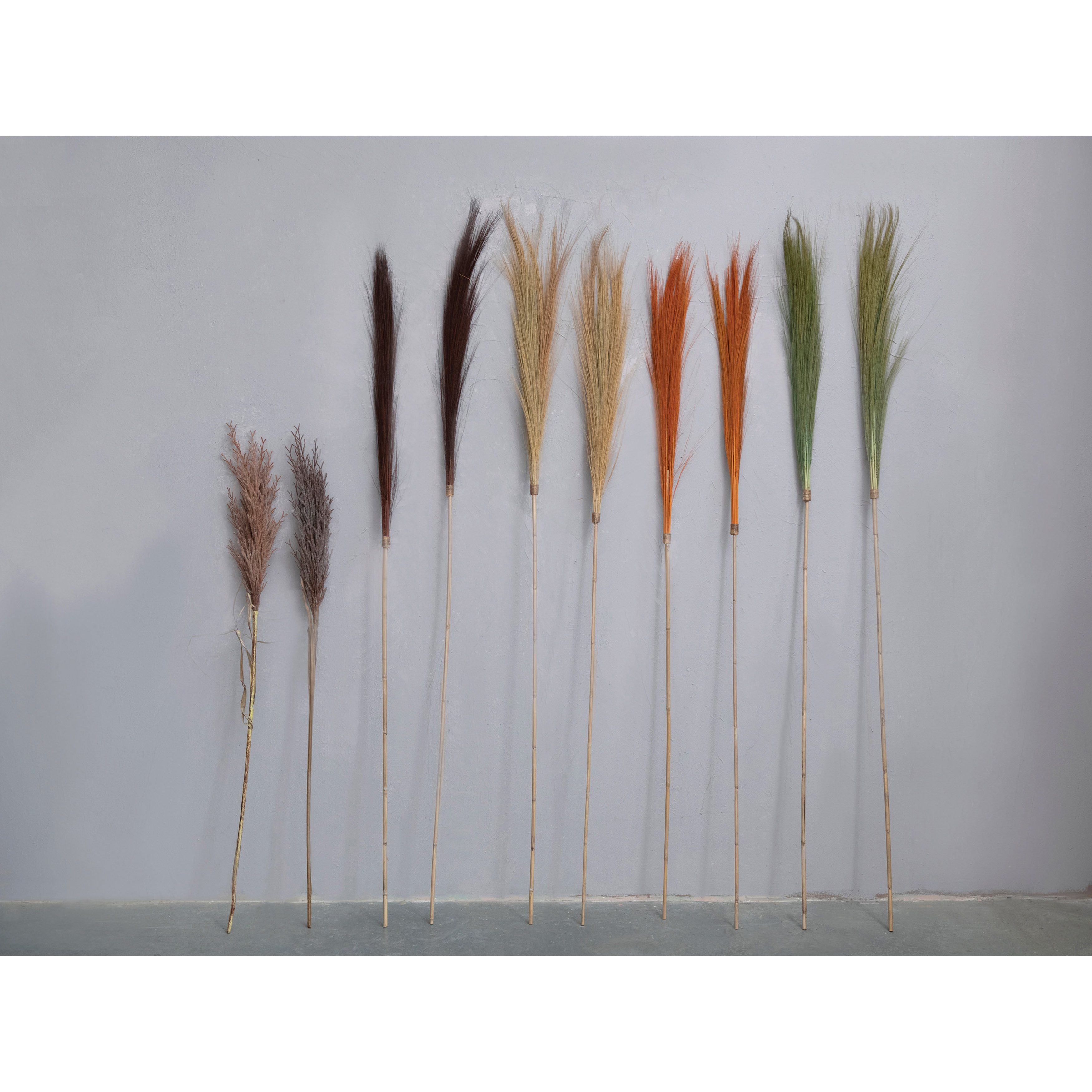 Catalog Name: Approximately 78"H Dried Natural Tiger Grass on Bamboo Pole, Tan Color