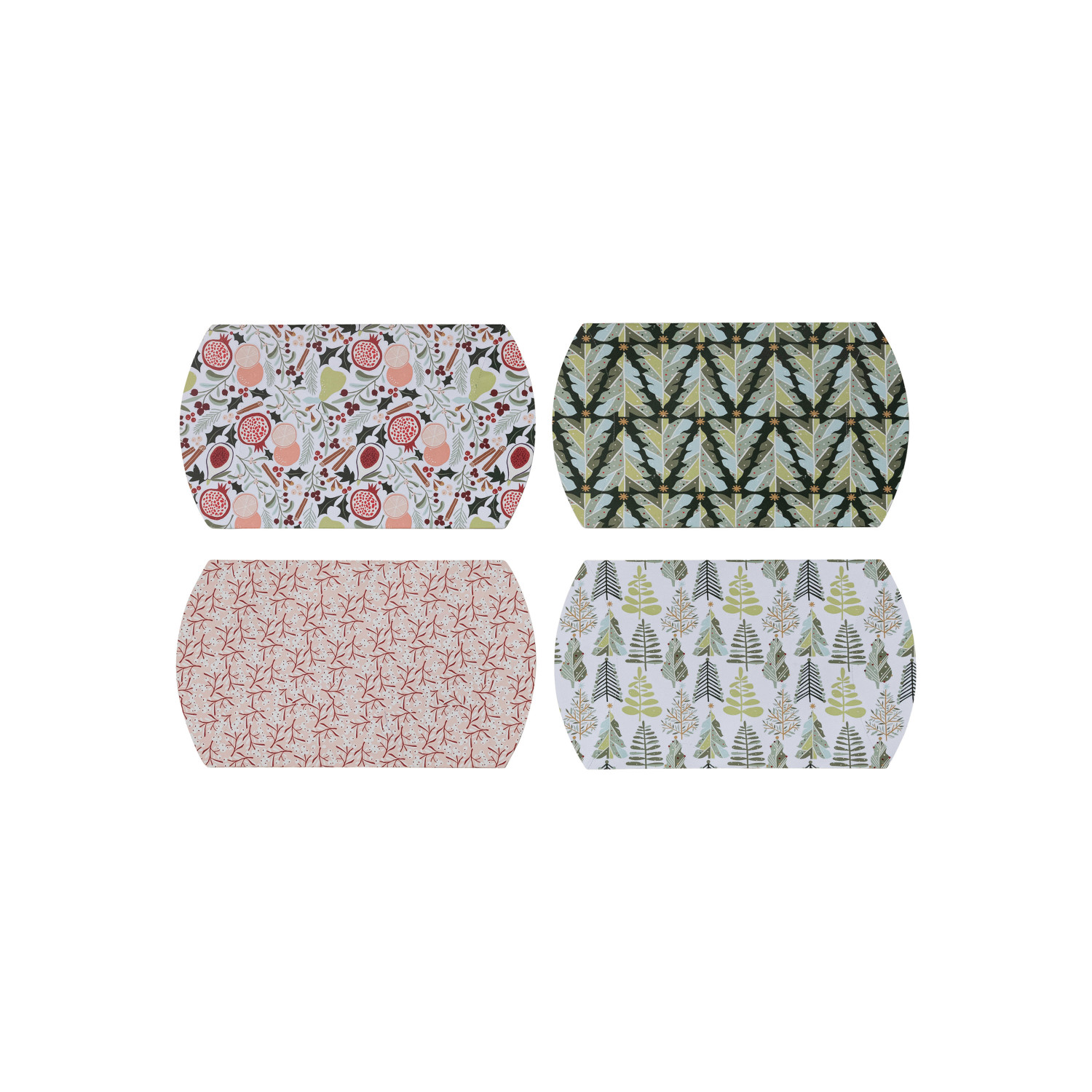 This large printed paper gift box with holiday patterns set is a festive and attractive way to pack gifts. The gift box features a colorful and merry pattern of snowflakes, trees, or ornaments, in four styles: red, green, pink, or white. The gift box is made of paper that is eco-friendly and sturdy, and can be reused or recycled easily. The gift box measures 11.75 inches in length, 8.25 inches in width, and 2.5 inches in height, and comes in a set of 4. Use it for Christmas, New Year, or Hanukkah, as this gift box will add some joy and spirit to gifts. A large and festive printed paper gift box with holiday patterns. A wonderful choice for packing gifts, as it features a colorful and merry pattern in 4 styles. Ideal for any holiday occasion, such as Christmas, New Year, or Hanukkah, as it adds some joy and spirit to presents.