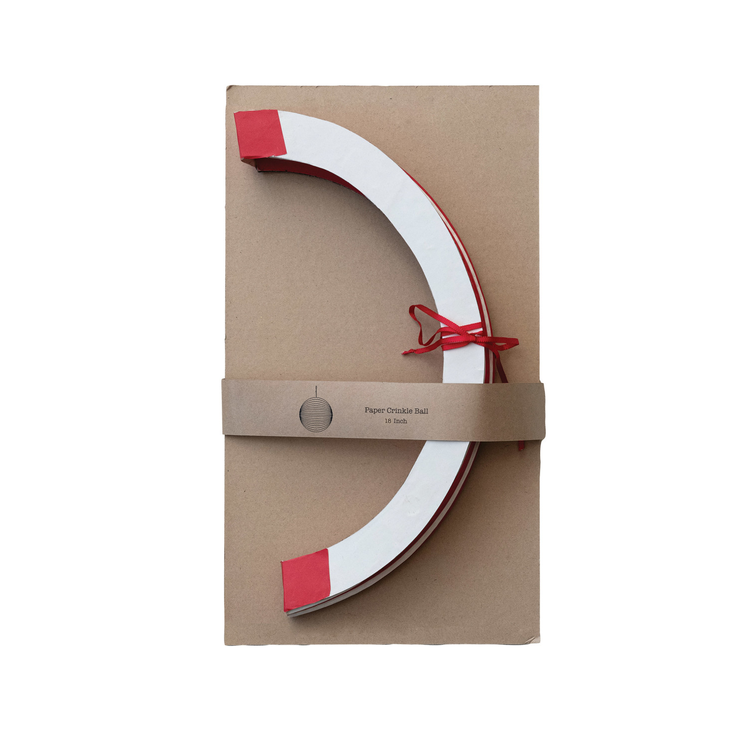 This red and white crinkle paper folding ball ornament is a unique and festive decoration that blends traditional holiday colors with modern design. Its 18-inch diameter and durable paper and polyester construction make it a standout addition to any holiday display. The intricate crinkle paper texture and vibrant hues make it a standout decoration. Whether part of a tree's ensemble or a table centerpiece, this ornament brings festive cheer and is perfect for adorning the Christmas tree or serving as a focal point in a festive centerpiece. Crafted from long-lasting paper and supple polyester, this product combines quality with a sophisticated design. A festive 18-inch diameter red and white crinkle paper folding ball ornament. An eye-catching piece that adds a pop of color and texture to any holiday display. Ideal for hanging on the Christmas tree or as a showpiece in a holiday centerpiece.