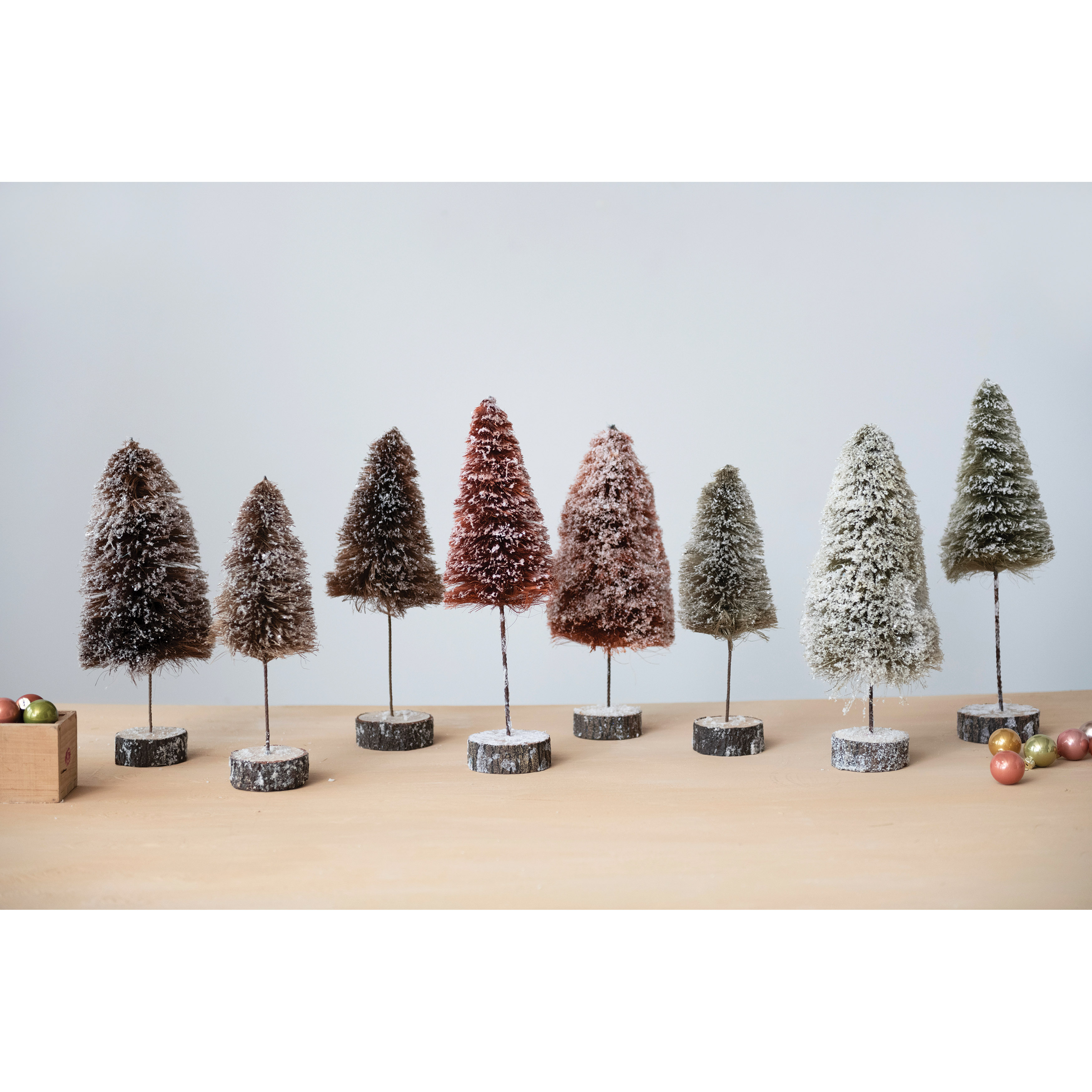 Sisal Bottle Brush Tree with Wood Slice Base, Snow Finish