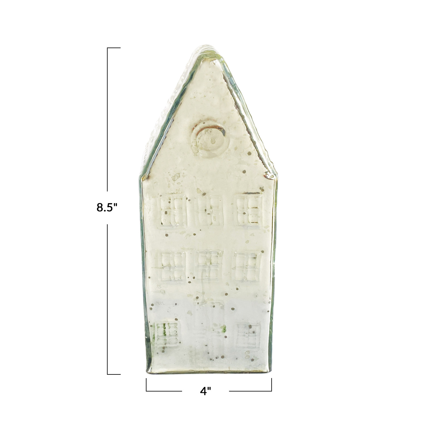 Catalog Name: 4" Square x 8-1/2"H Mercury Glass House, Silver Finish