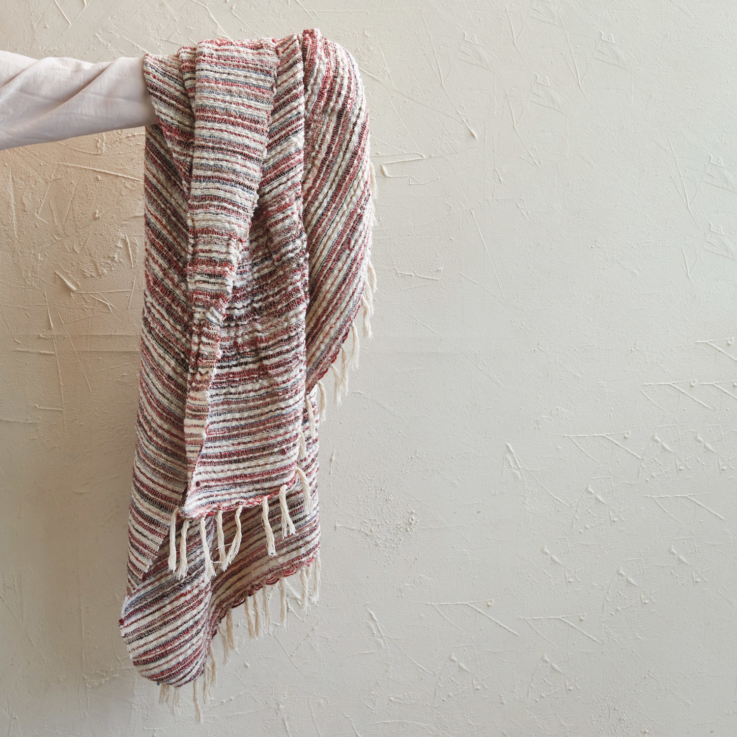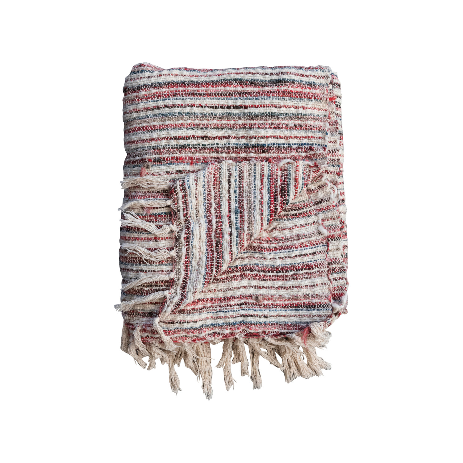 Woven Cotton & Wool Throw w/ Stripes & Fringe, Multi Color