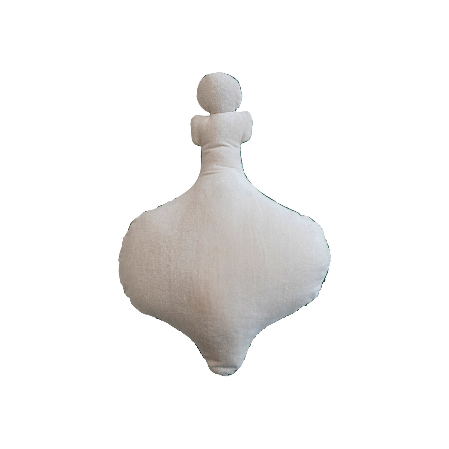 This cotton velvet ornament-shaped pillow, with its intricate embroidery and festive colors, brings the spirit of the holidays into the home. The natural and green tones blend seamlessly with any seasonal decor, while the cotton velvet provides a sumptuous feel. Measuring 15 inches long and 10 inches wide, it is perfect for adding a touch of holiday cheer to any couch, chair, or bed. The cotton fill ensures a plush, comfortable touch, inviting relaxation and holiday cheer into any space. This festive pillow is the perfect addition to any holiday decorating, adding a cozy and luxurious element to the living space. A festive charm, this ornament-shaped pillow features elegant embroidery on plush cotton velvet in natural and green hues. An exquisite accent piece, it's designed to add a touch of holiday elegance to any seating area or bedroom. A soft, cotton fill provides a comfortable and supportive embrace.