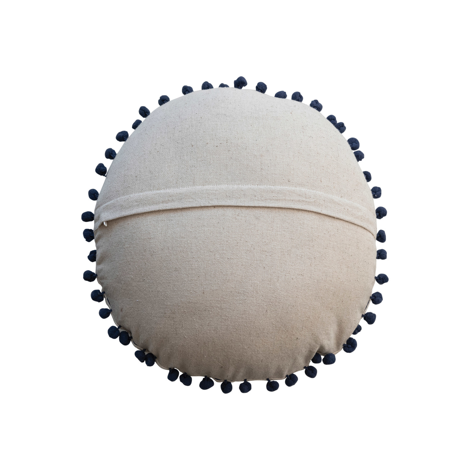 16" Round Cotton & Linen Pillow w/ Pom Pom Trim & Chambray Back