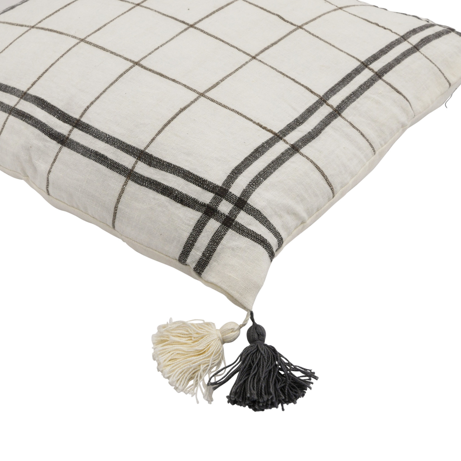Catalog Name: 20" Square Linen Blend Pillow w/ Grid Pattern & Tassels, Cream Color & Black