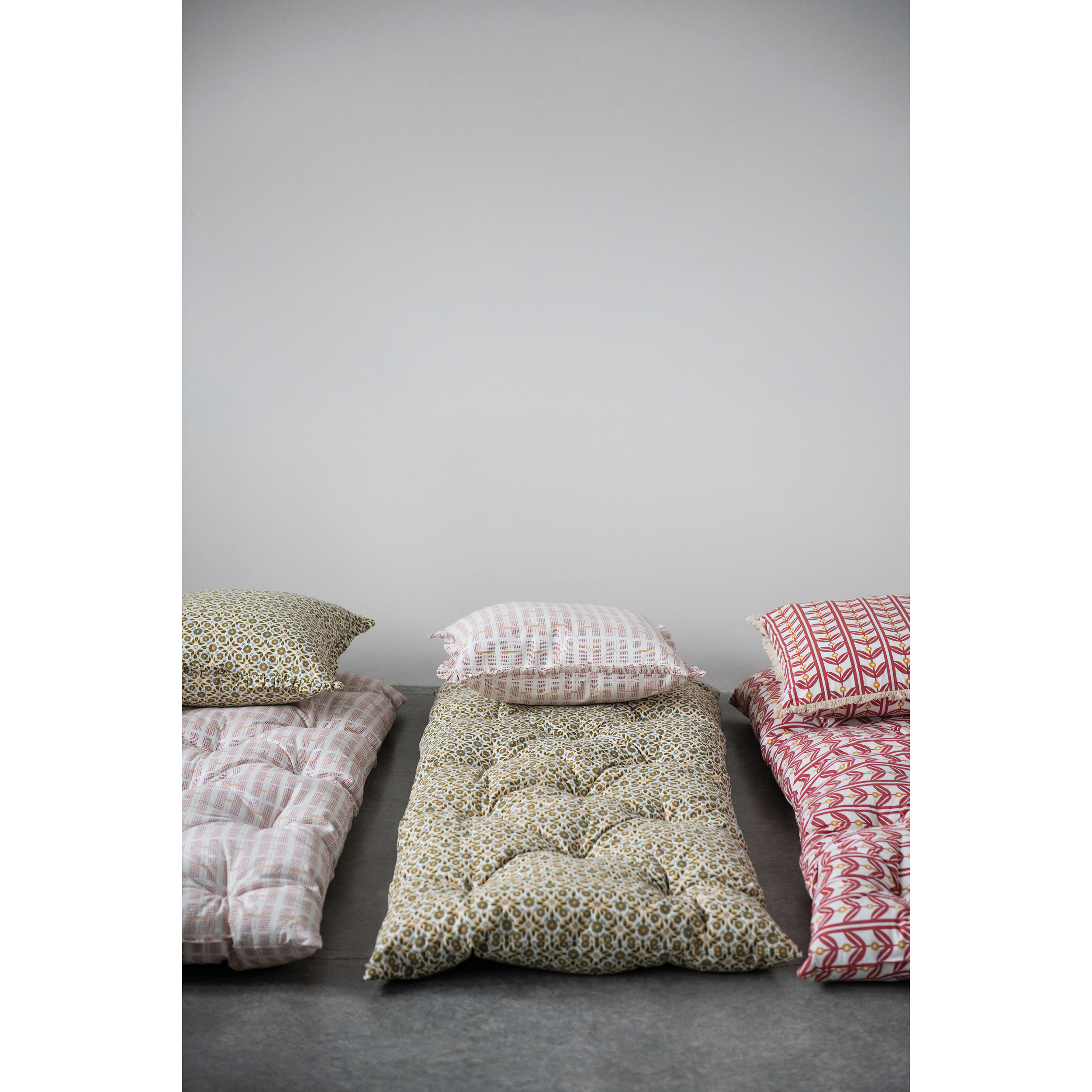 These cotton pillows instantly upgrade any couch or chair, and catches the eye effortlessly with their soft cotton construction and ruffled edges. Constructed of a removable cotton cover, for easy cleaning, with a filling made entirely of polyester. Measures 20" L x 20" W x 2" H.
