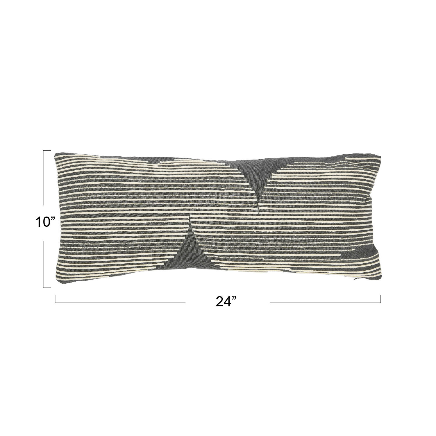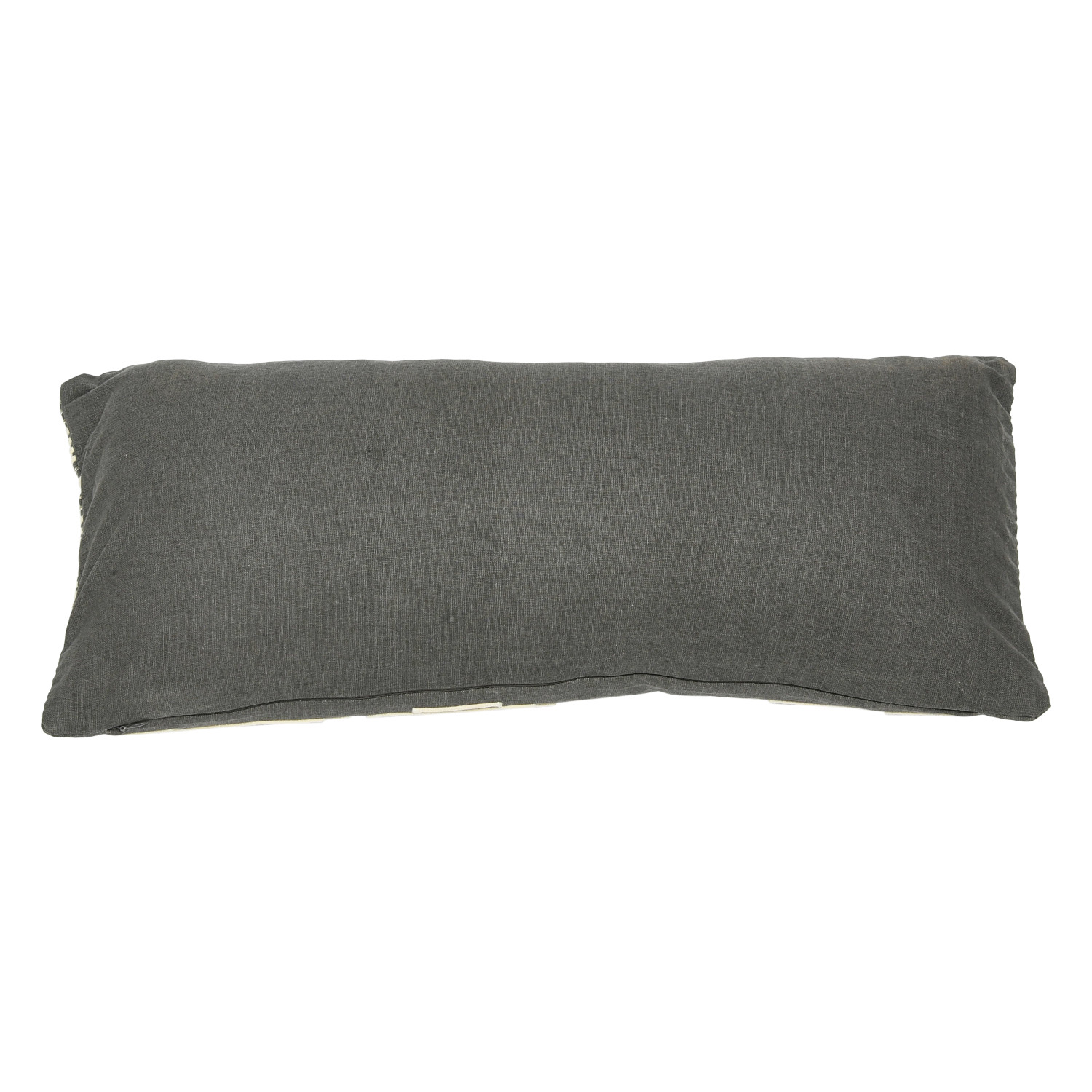Catalog Name: 24"L x 10"H Cotton Lumbar Pillow w/ Gold Metallic Thread Embroidery & Rope Applique, Grey