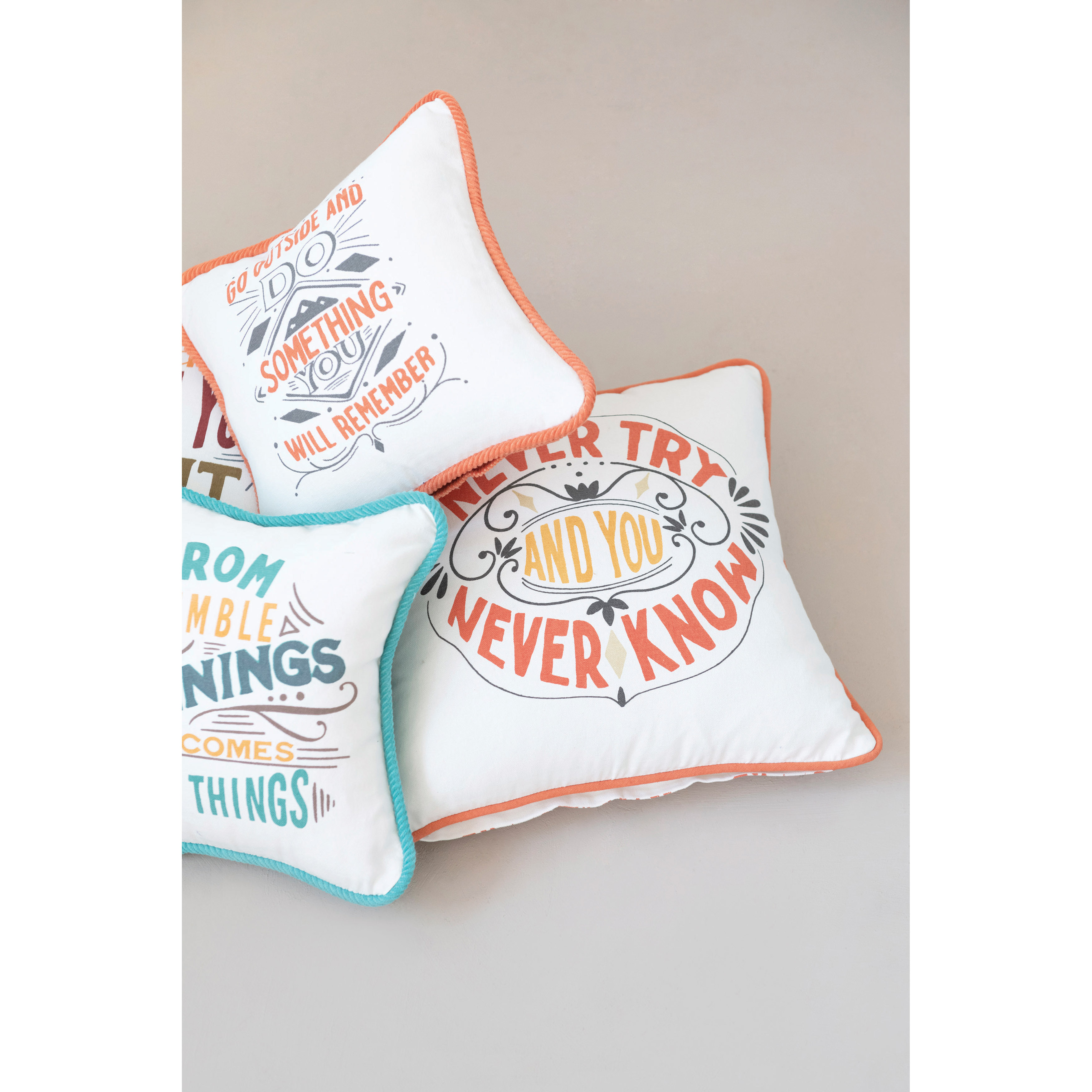 12" Cotton Pillow with Saying, Cord Piping & Back, 2 Styles