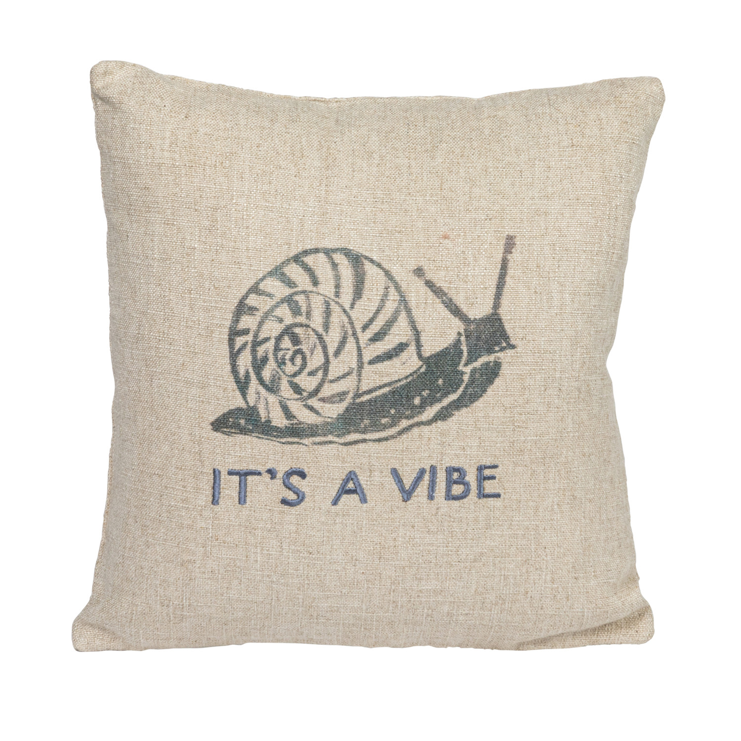 Linen Blend Printed Pillow w/ Snail & Embroidery "It's A Vibe" ©