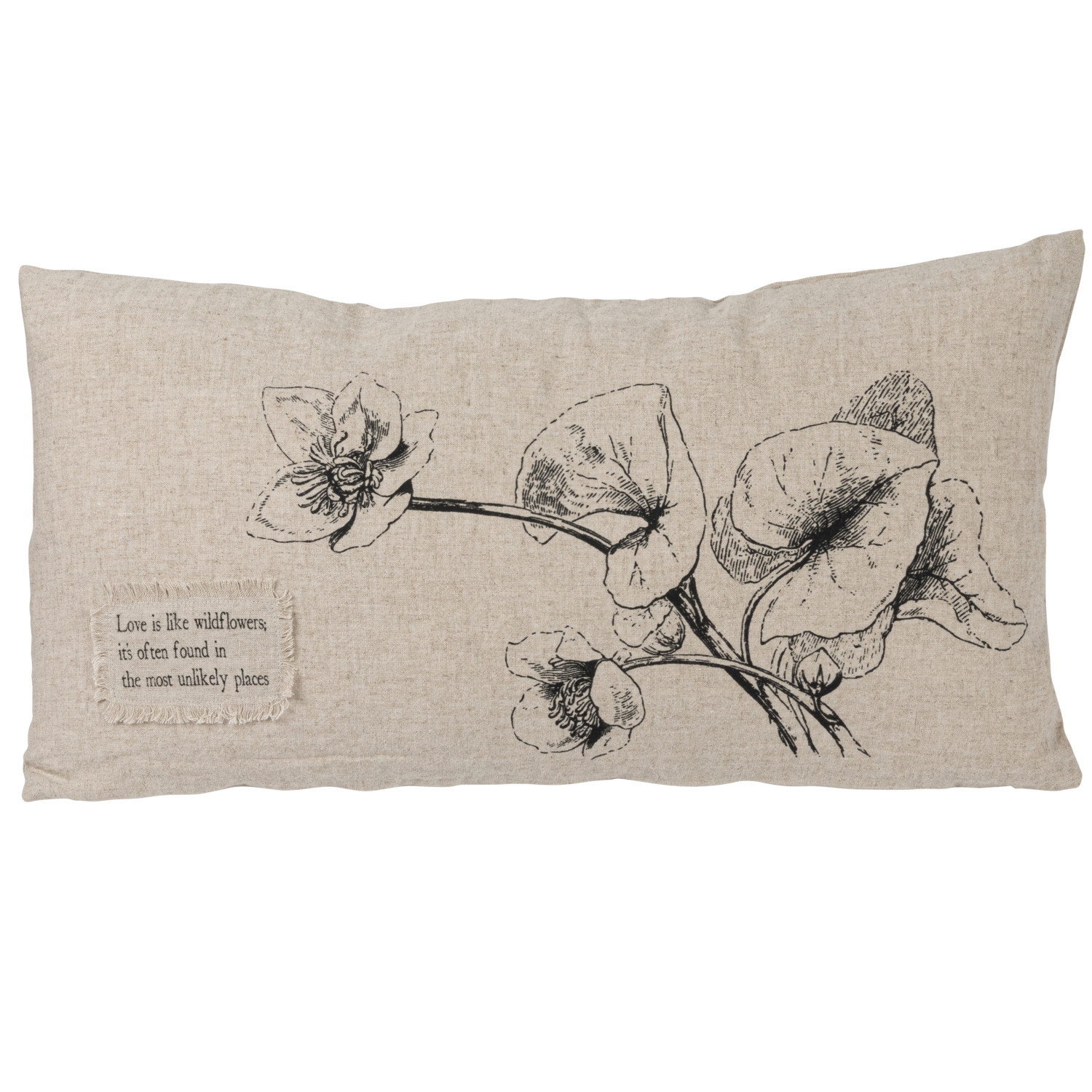 The Linen Blend Printed Lumbar Pillow has a natural and black color palette, combined with the charming saying text, flowers, and bird designs, adding a touch of elegance and whimsy to any space. The neutral color scheme allows for easy integration with existing decor, while the intricate designs add a unique and artistic flair. Crafted from a high-quality linen blend fabric, this pillow offers a luxurious feel and durability, the printed design on the front and the decorative flowers and bird on the back create a visually captivating and versatile piece. The product is made of cotton. This pillow measures 24 inches in length and 12 inches in width. The Linen Blend Printed Lumbar Pillow has a natural and black color palette, combined with the charming saying text, flowers, and bird designs, adding a touch of elegance and whimsy to any space. The neutral color scheme allows for easy integration with existing decor, while the intricate designs add a unique and artistic flair. Crafted from a high-quality linen blend fabric, this pillow offers a luxurious feel and durability, the printed design on the front and the decorative flowers and bird on the back create a visually captivating and versatile piece. The product is made of cotton.