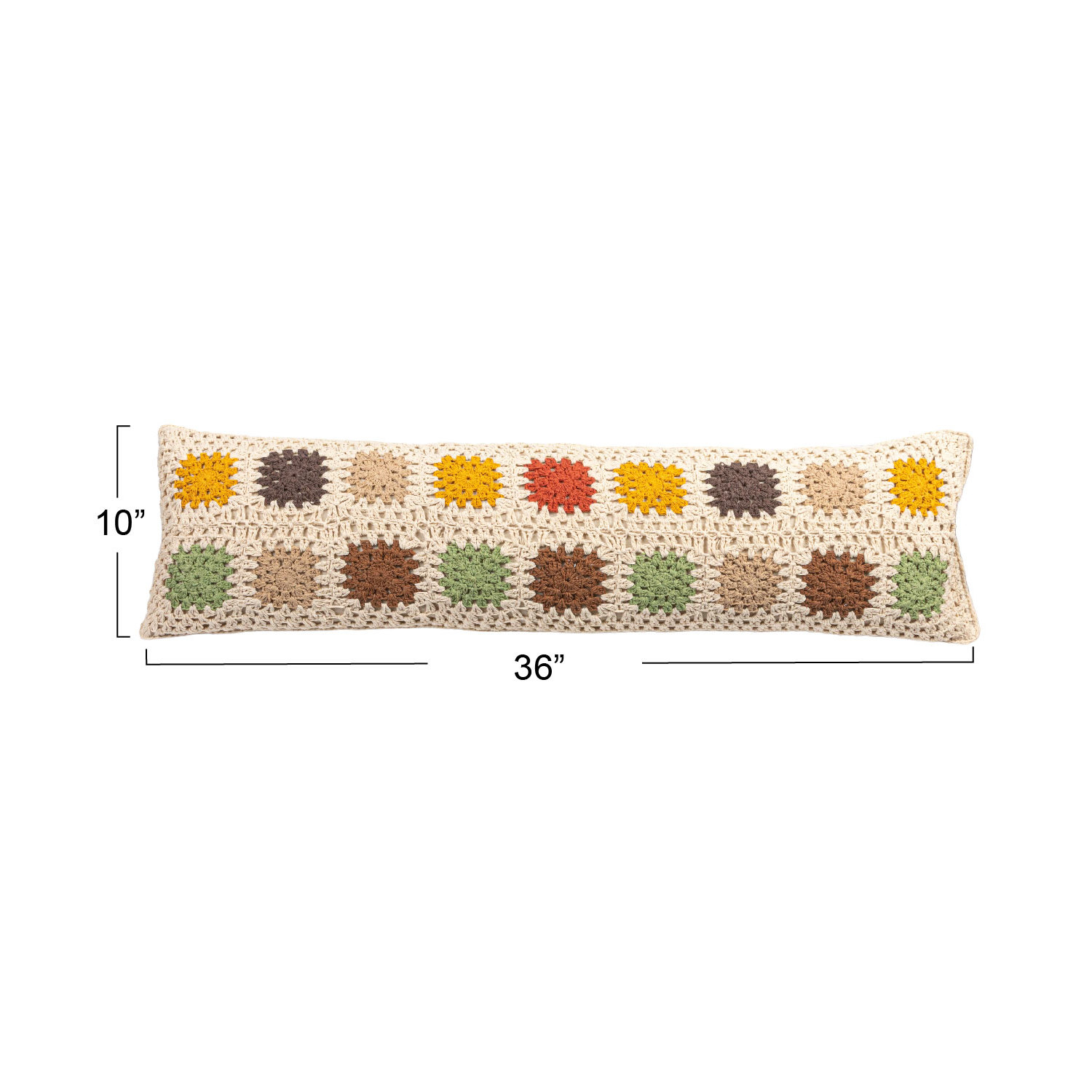 Catalog Name: 36"L x 10"H Cotton Crocheted Granny Square Lumbar Pillow w/ Block Pattern, Multi Color