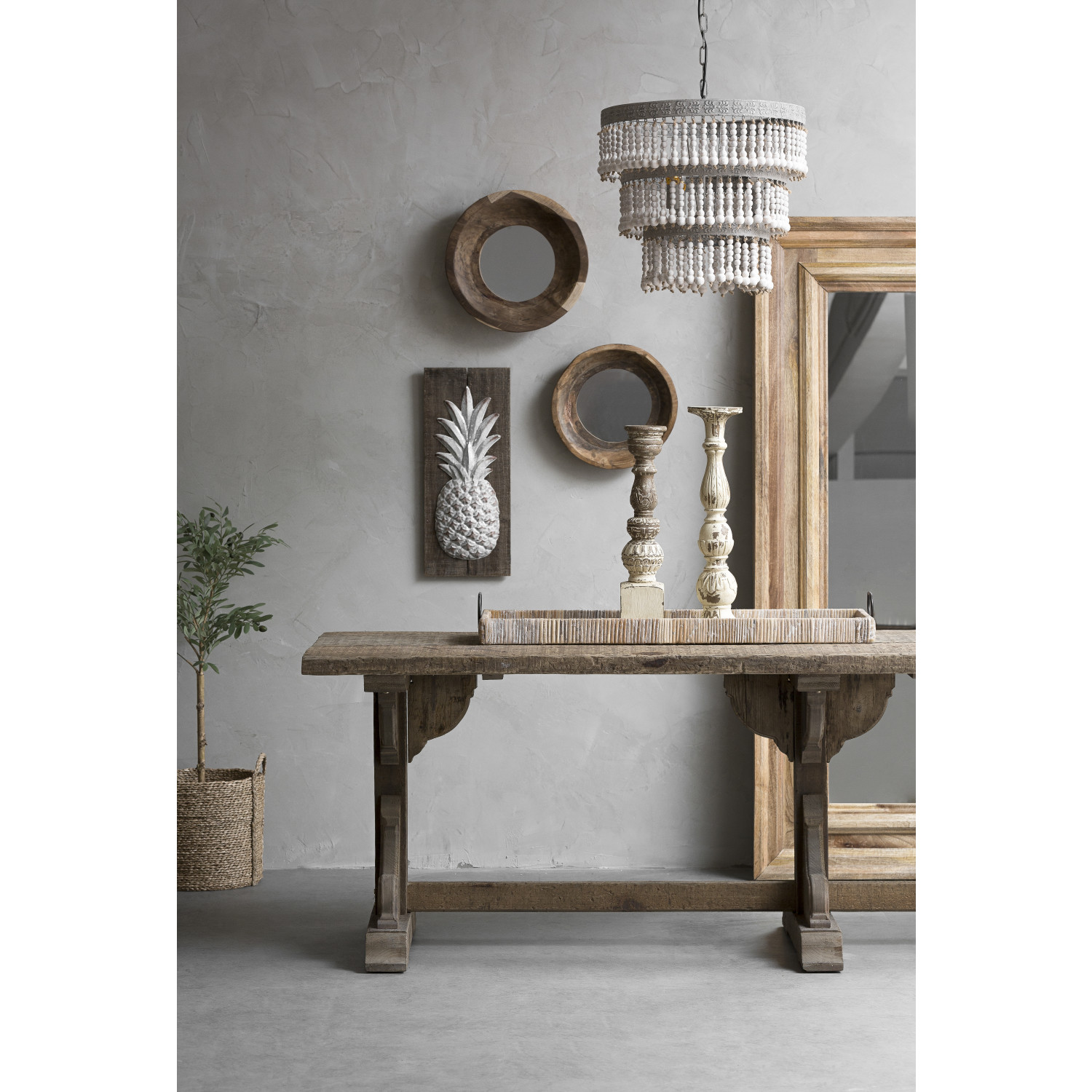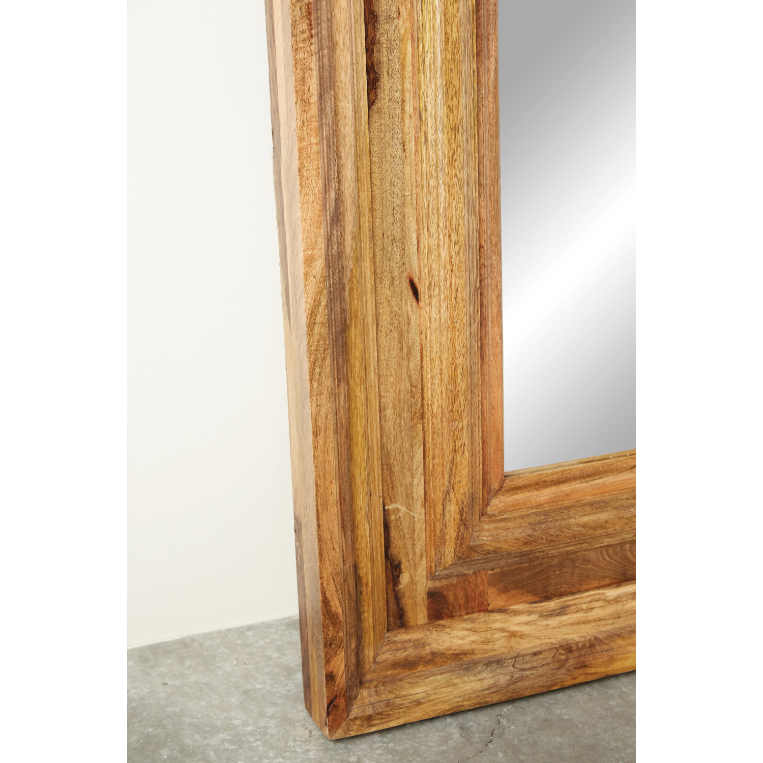 Bring light and depth into your home with the tall, wood framed mirror. The frame is made from mango wood and shows the beautiful grains and shades of the wood. Perfect for entryways and hallways, this mirror is perfect for nearly any home.