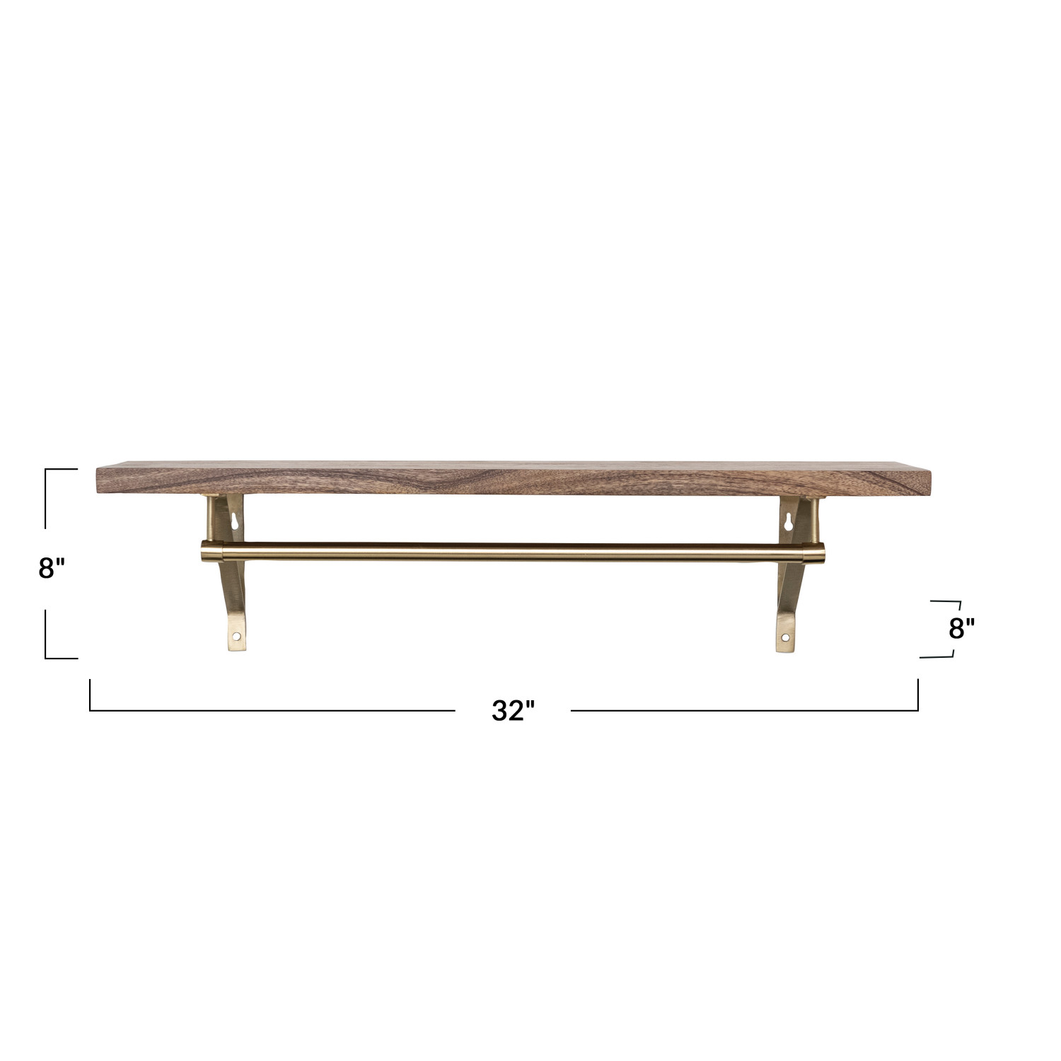 Catalog Name: 32"W x 8"D x 8"H Mango Wood & Metal Wall Shelf w/ Rod, Antique Gold Finish & Natural, KD